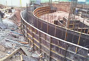 기초 방석과 옹벽 거푸집 조성작업사진입니다.
