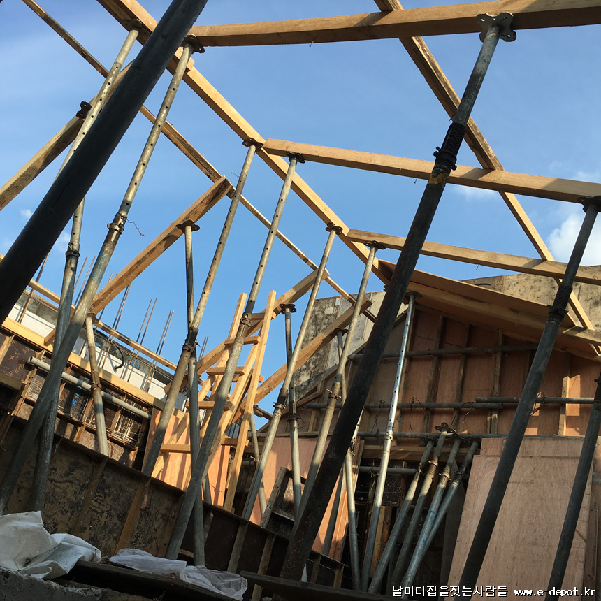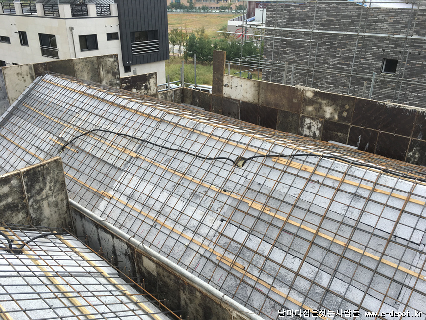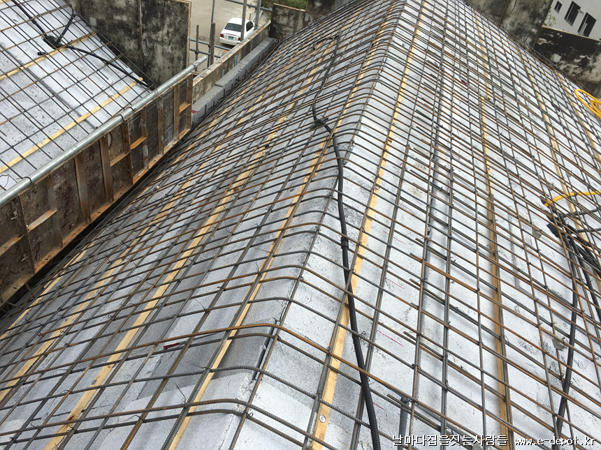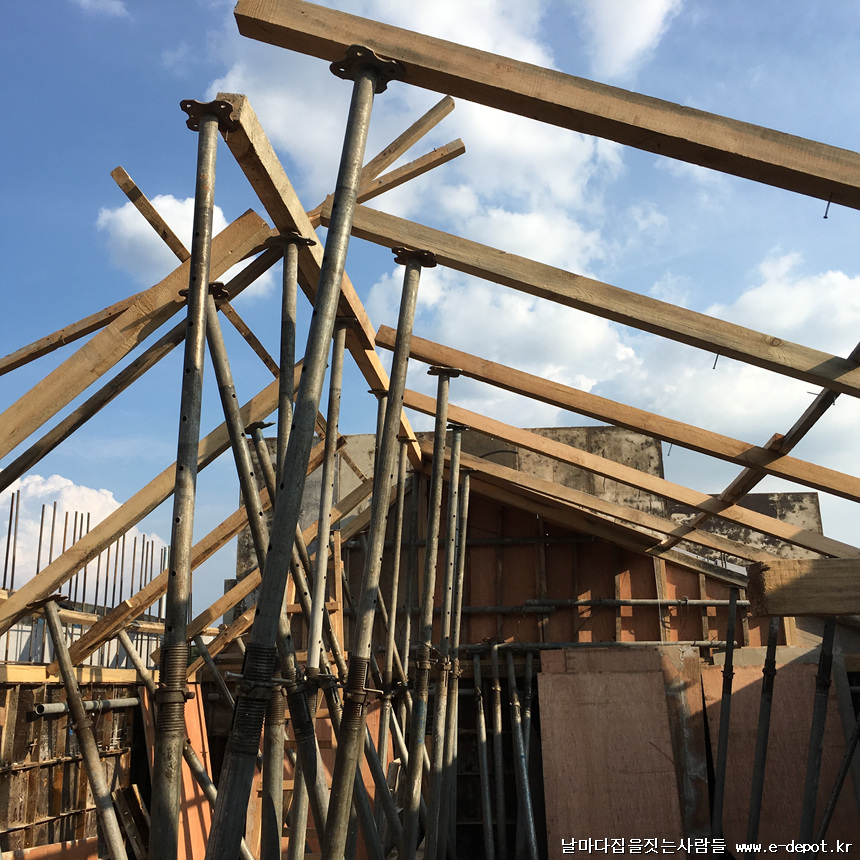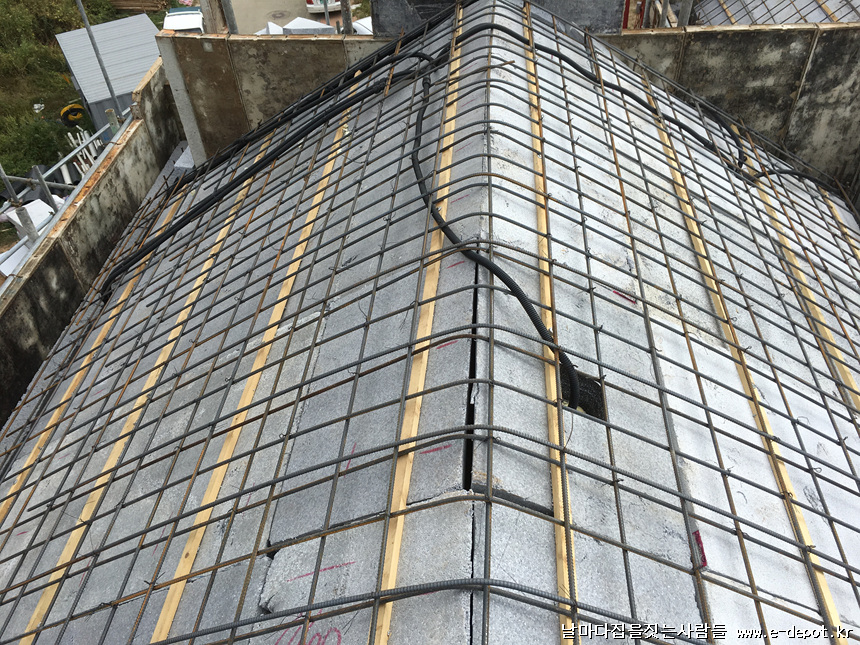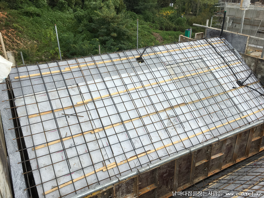 예쁜전원주택짓기.철근콘크리트 골조시공 최상층 거푸집조성 및 철근배근 과정예쁜전원주택짓기.철근콘크리트골조 최상층지붕공사 거푸집조성 및 철근시공과정