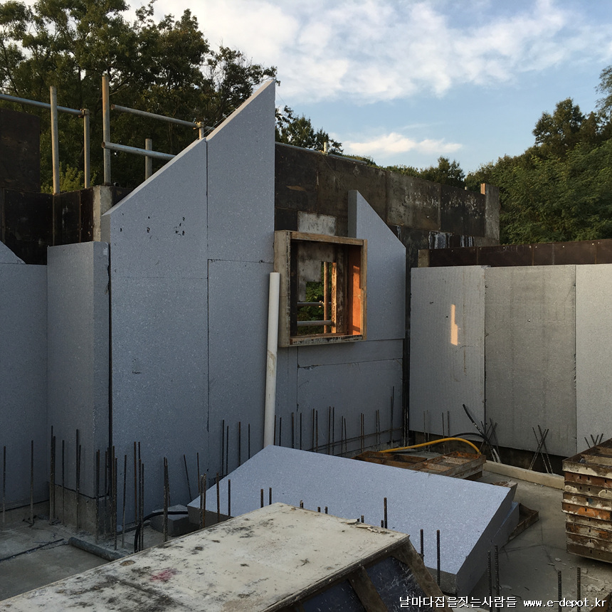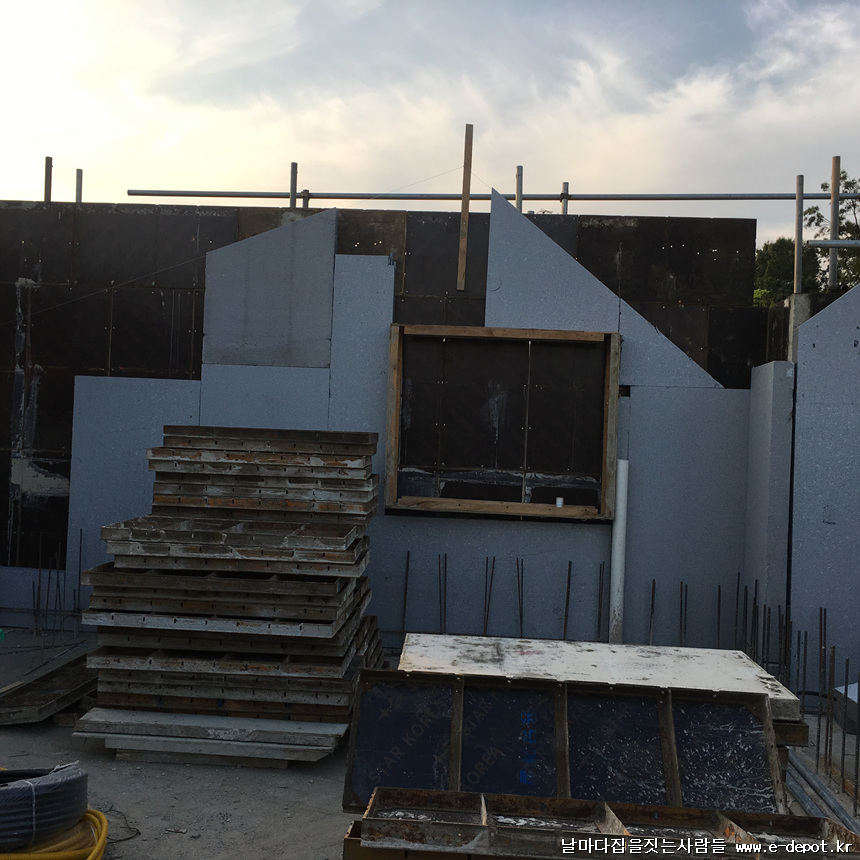 외부 거푸집 시공 후 단열재 부착 사진입니다.