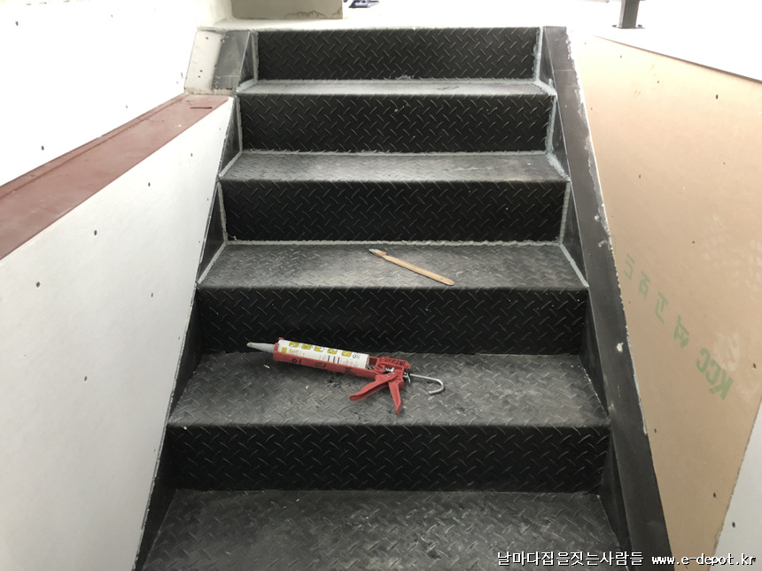 기존의 불편했던 원형계단 철거전에 신설 계단 설치작업을 선 진행합니다.