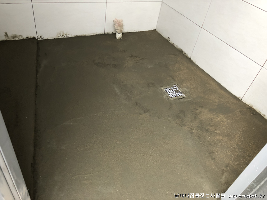 기존 화장실은 일부 철거하고 급,배수 설비배관을 새로 한 후 타일은 덧방으로 시공할 예정입니다.