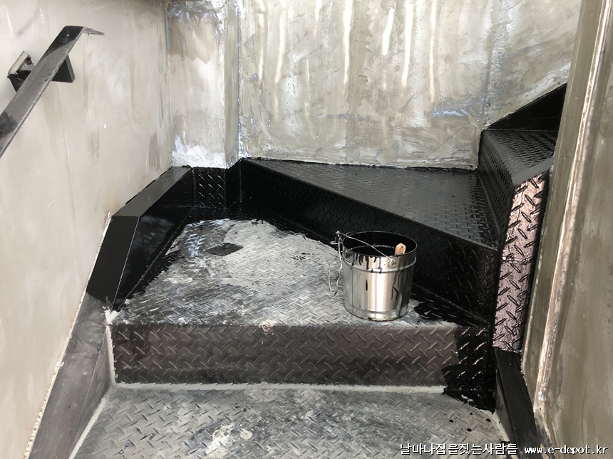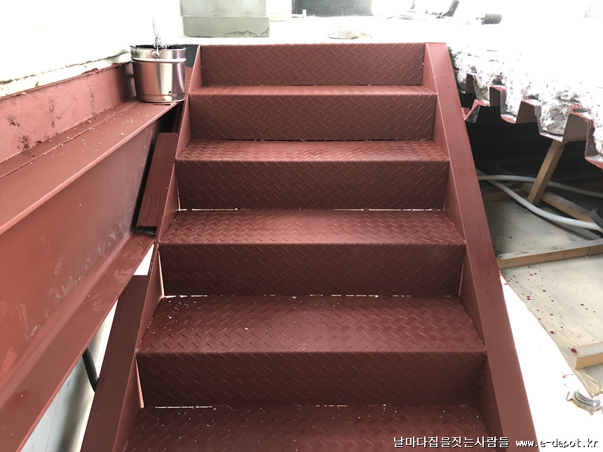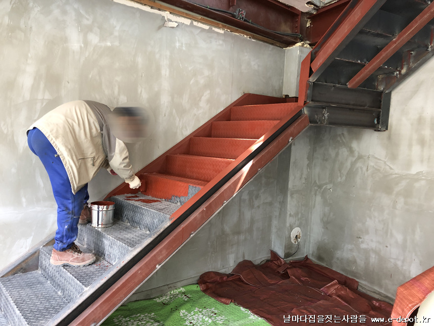 2층 신설 계단 녹막이칠과 초벌 우레탄도색