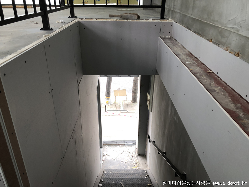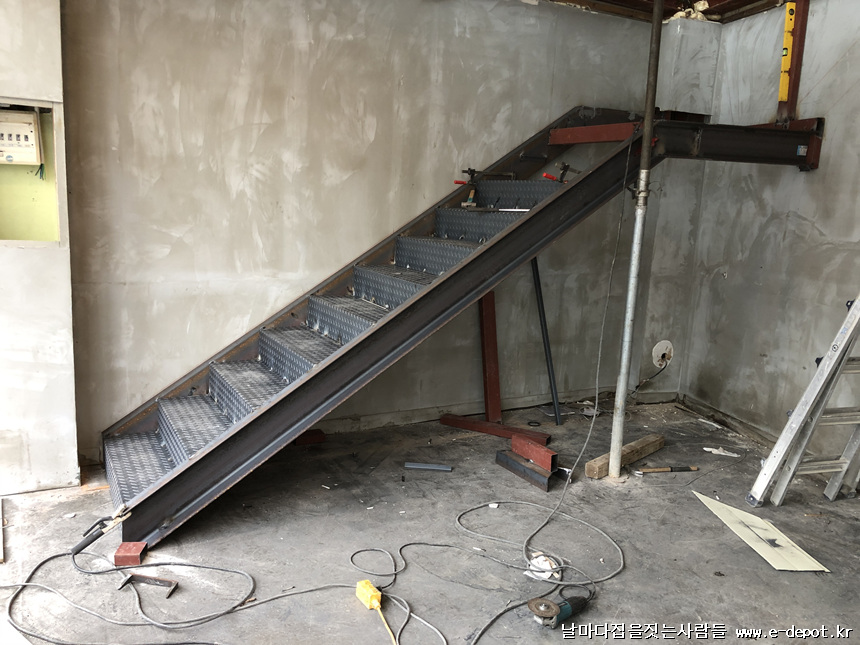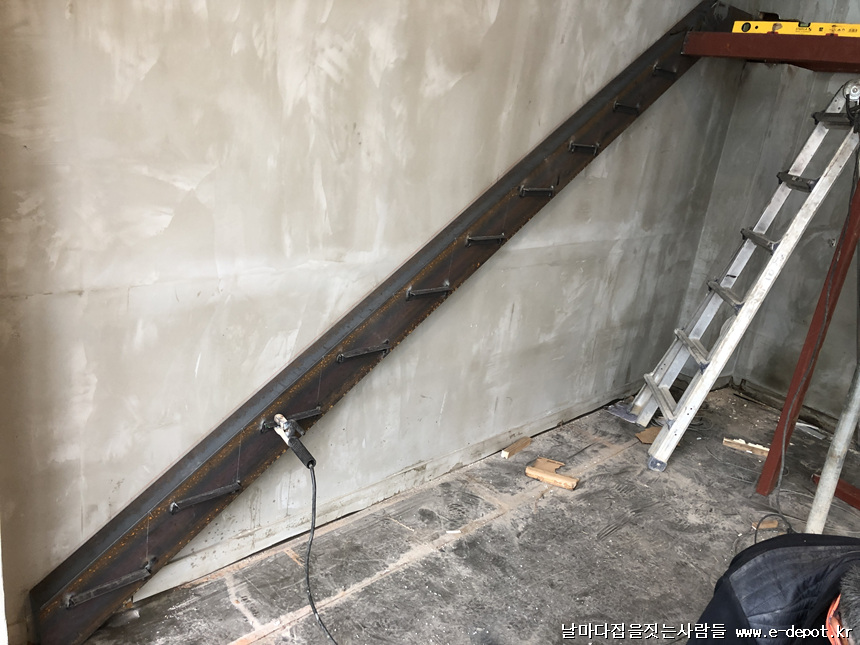 기존의 불편했던 원형계단 철거전에 신설 계단 설치작업을 선 진행합니다.