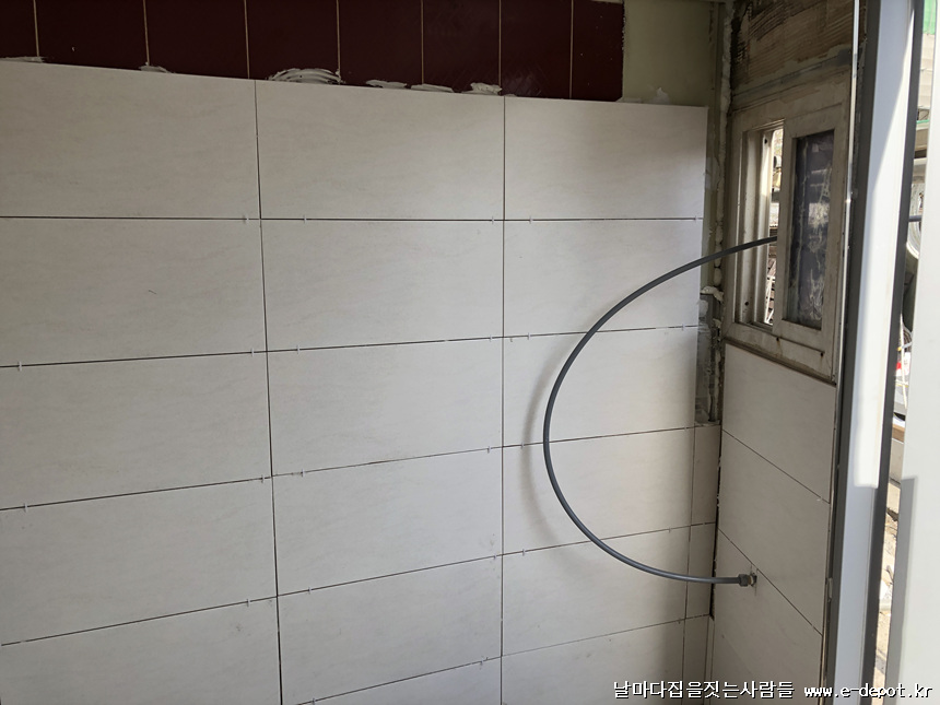 기존 화장실은 일부 철거하고 급,배수 설비배관을 새로 한 후 타일은 덧방으로 시공할 예정입니다.