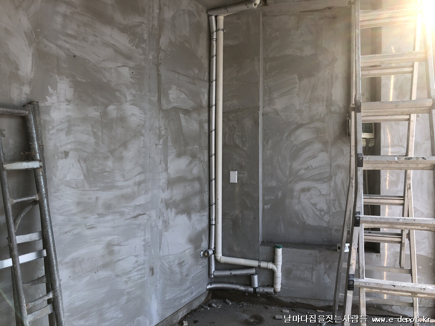 1,2 층 급,배수 설비배관 후 기존 원형계단 상부 몰탈마감