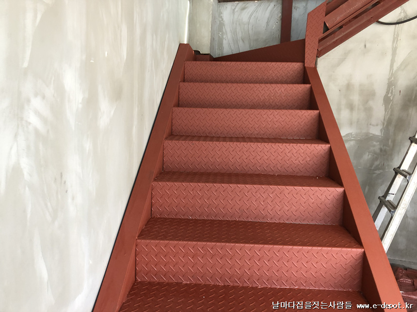 2층 신설 계단 녹막이칠과 초벌 우레탄도색