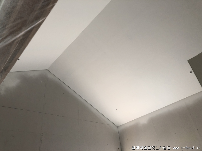 천정과 벽체 퍼티작업 사진입니다.