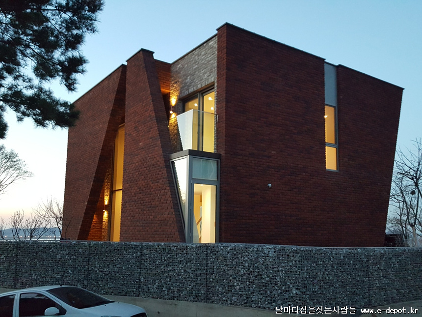 [BY 월간 전원속의 내집] 파주 서패동 주택흔치 않은 사선의 붉은 벽돌 외관. 건축주가 오랫동안 바라온...