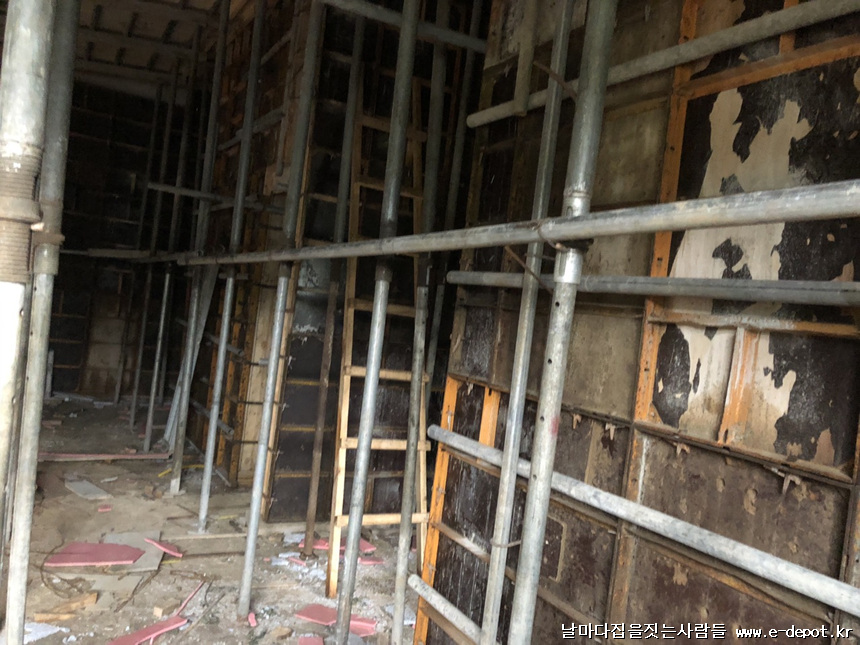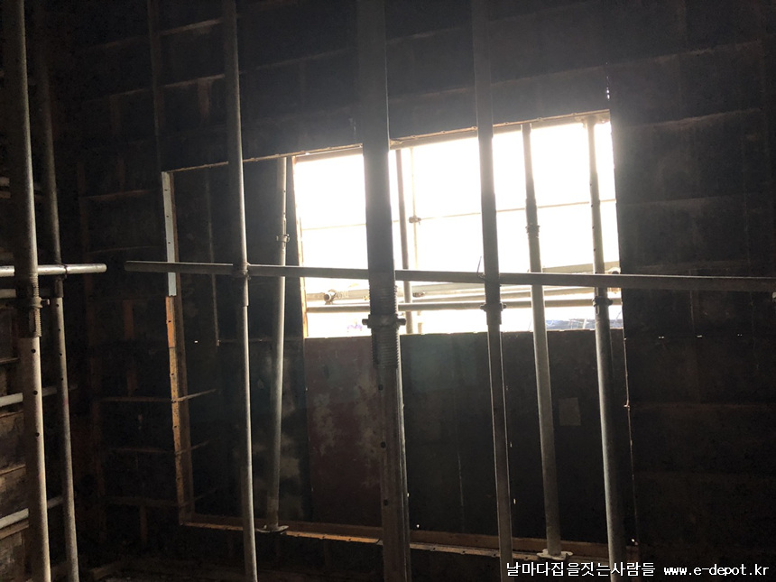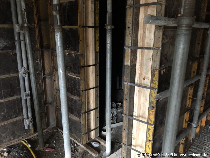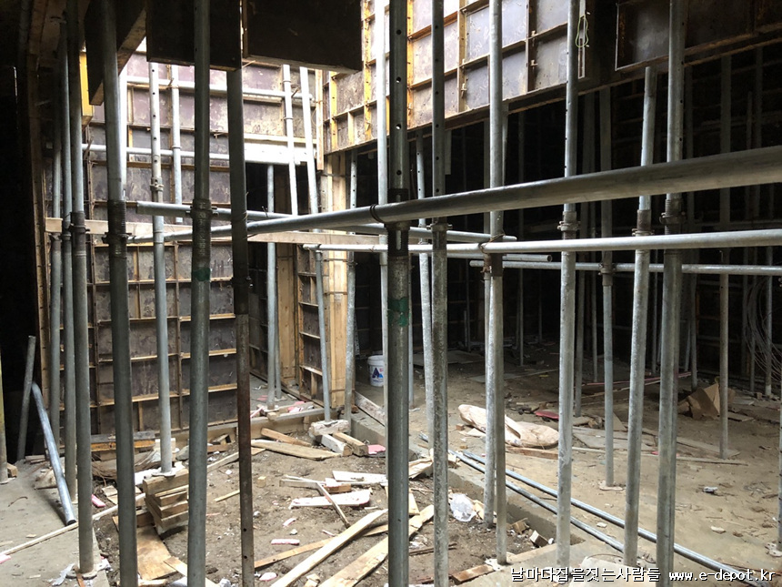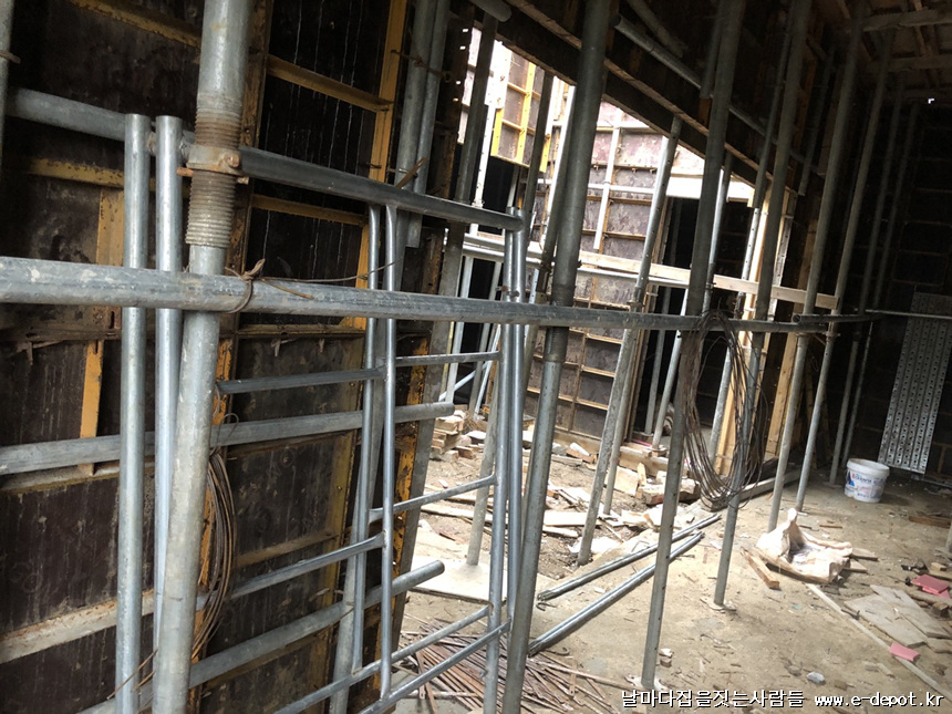 동바리의 경우는 동바리간 이격거리(약 900mm)를 일정간격 유지해서 설치해야 합니다. 그리고 층고가 높은 경우 동바리간 후리도메(수평연결)를 하여 동바리가 유동없이 받침역할을 충분히 할 수 있도록 해줘야 합니다.