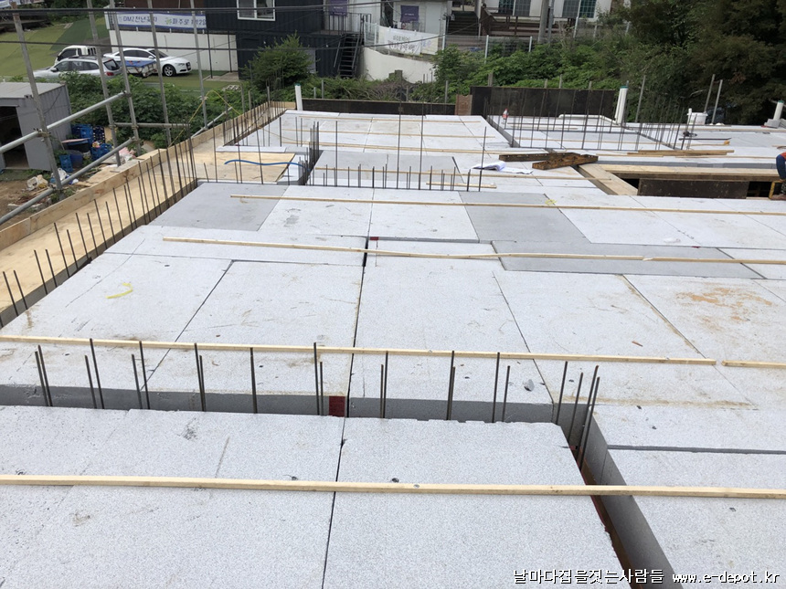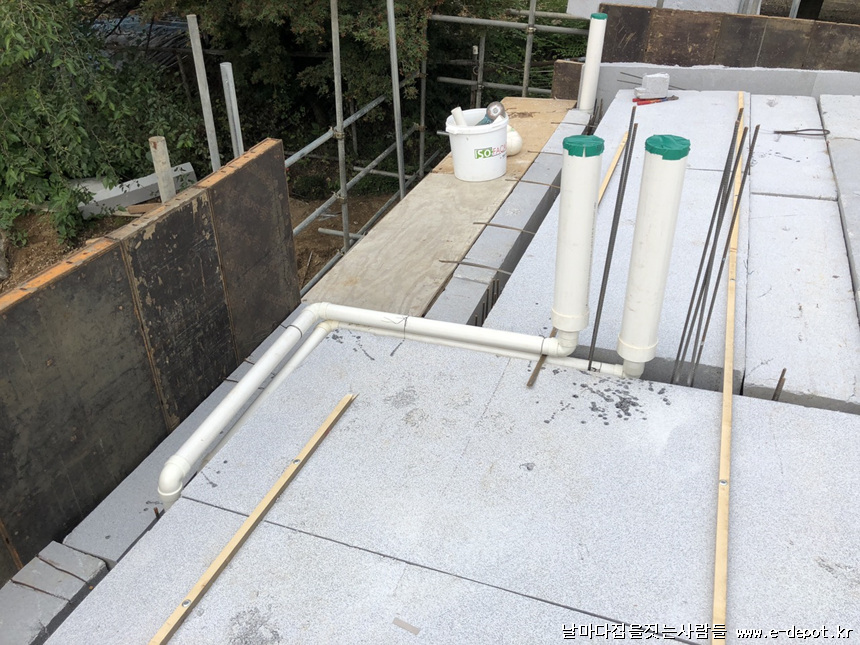 철근콘크리트주택 스라브거푸집 단열재깔기,동바리,후리도메,우수드레인설치