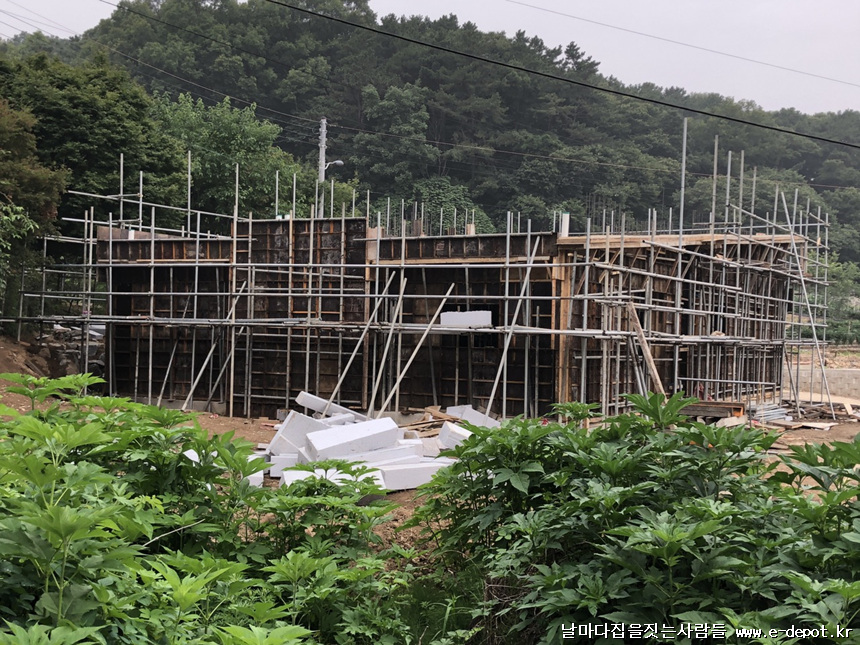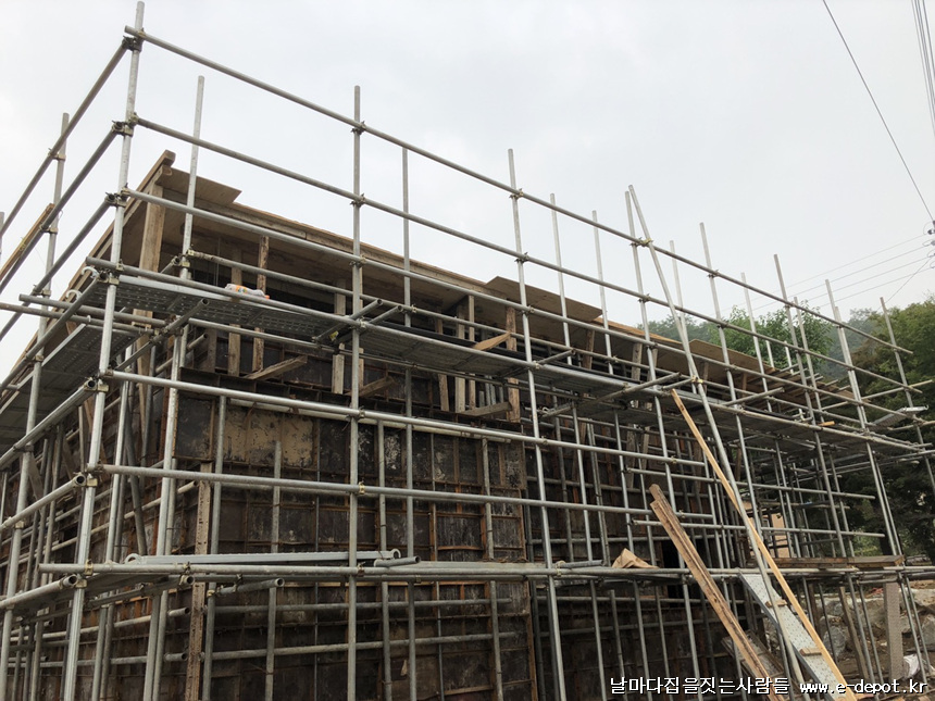 날마다집을짓는사람들의 철근콘크리트주택 스라브거푸집 단열재깔기,동바리,후리도메,우수드레인설치 과정이었습니다.