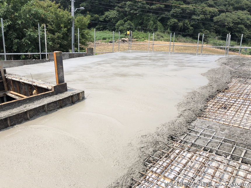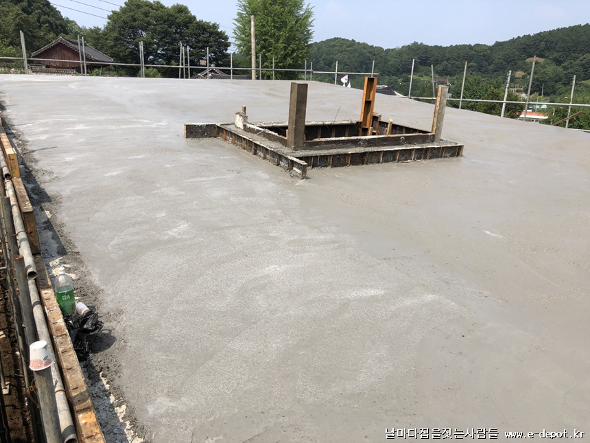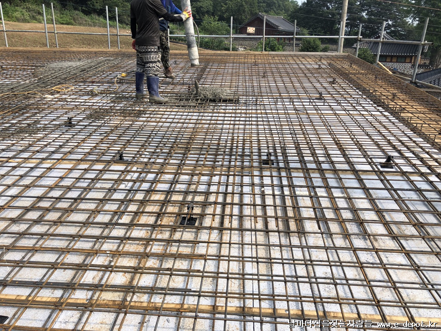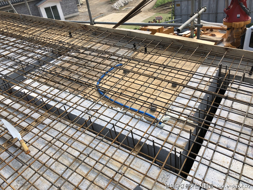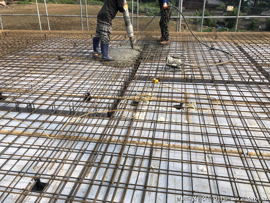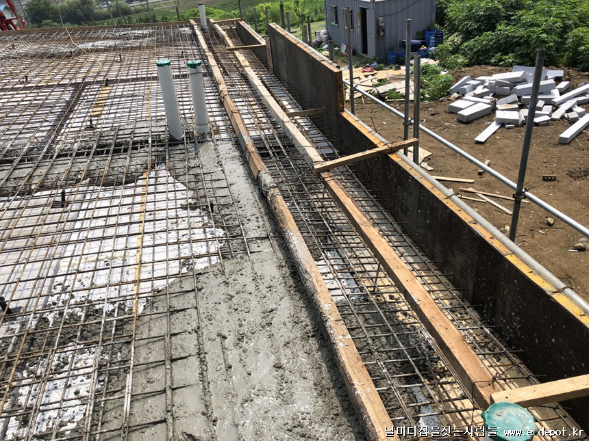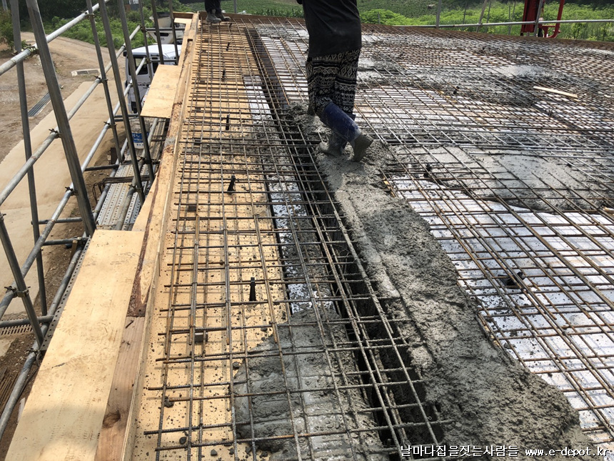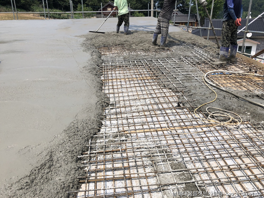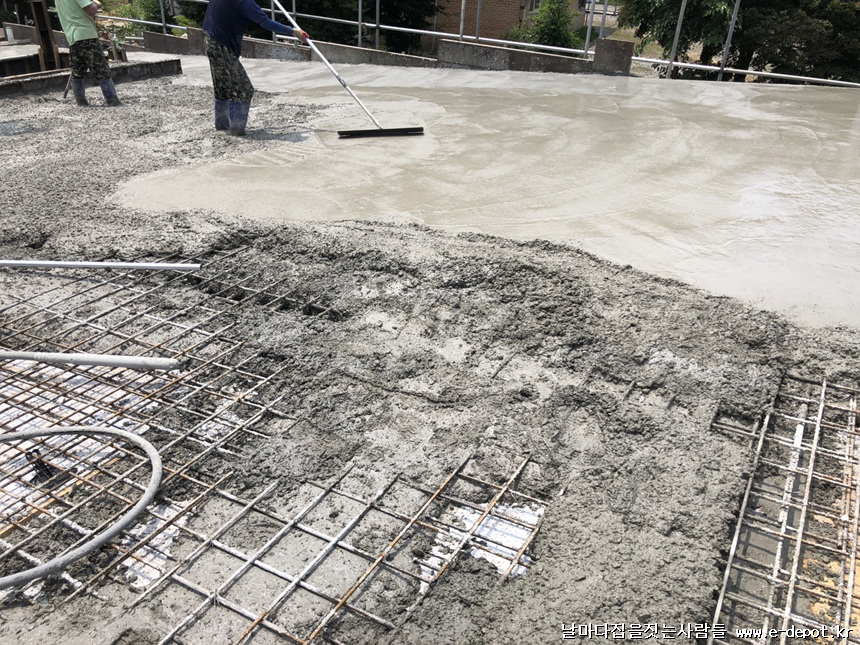 지붕 콘크리트 타설이 마무리된 사진입니다.
