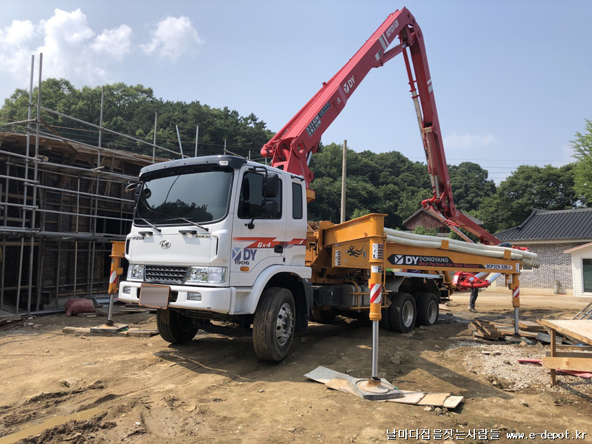 무사히 지붕콘크리트 타설을 마친 후 펌푸카를 접는 사진입니다. 기사님 수고하셨어요~~^^