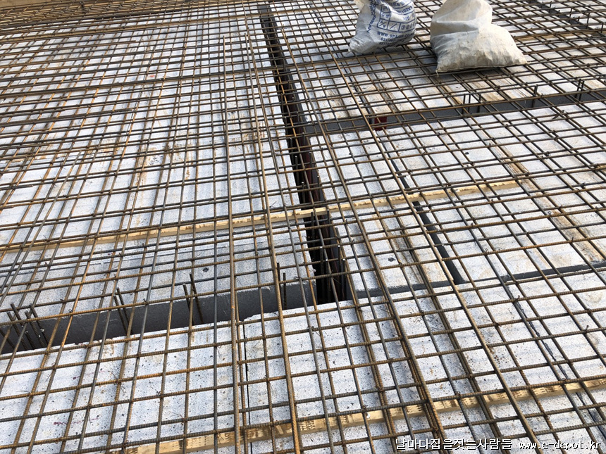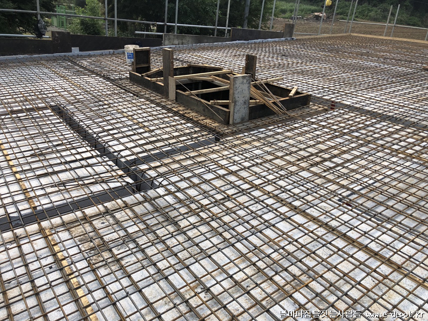 철근 하부근 배근 사진입니다.