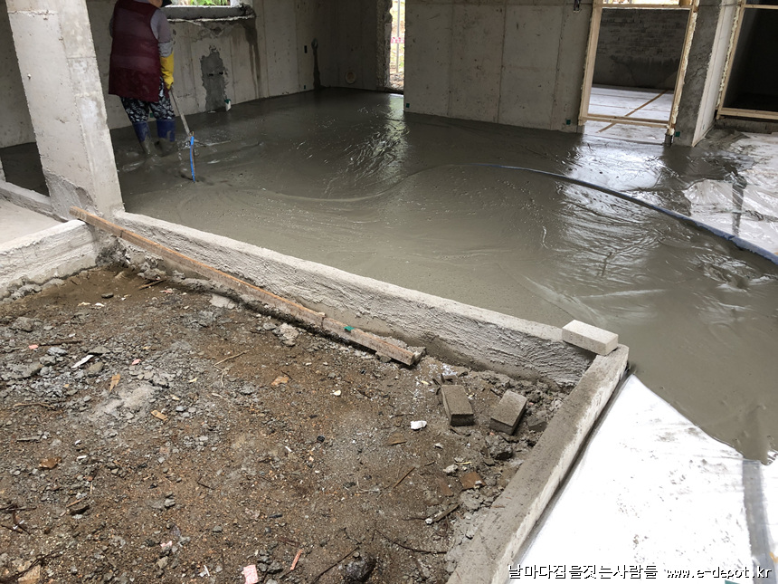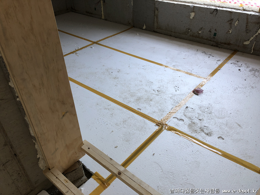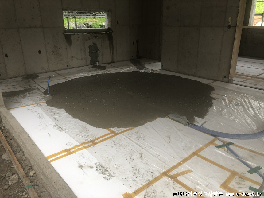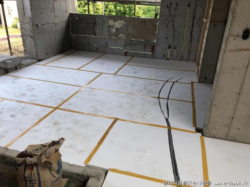 판넬히팅 과정 중 바닥단열재 시공 및 단열기포타설 과정이었습니다.