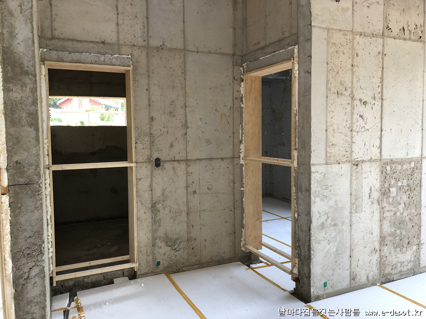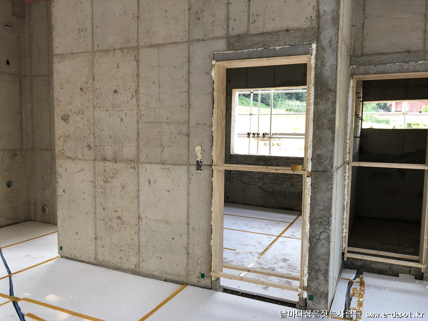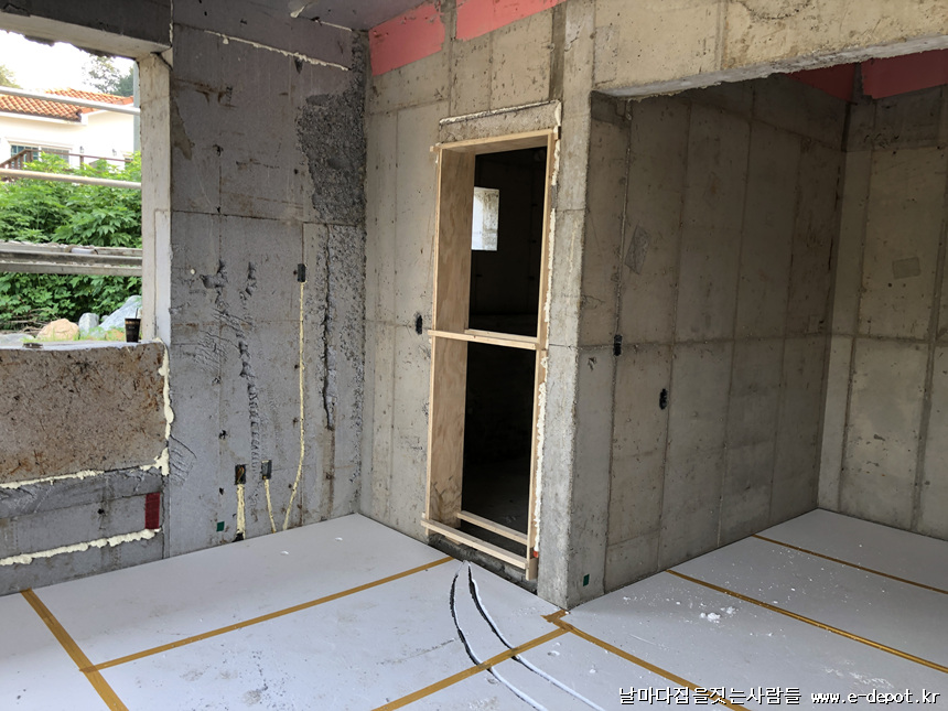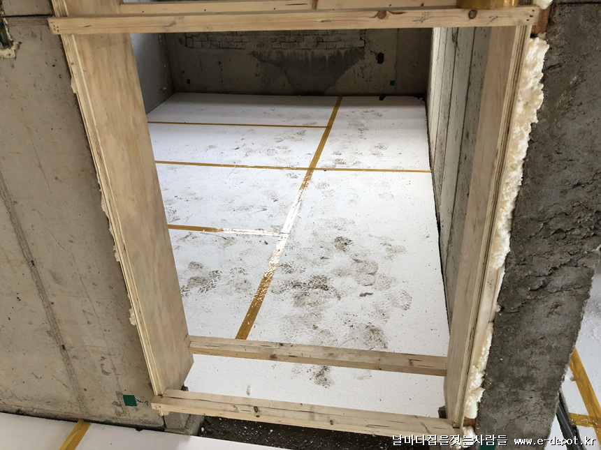 전원주택짓기.목창호후레임설치와 판넬히팅(방통)을 위한 바닥단열재깔고 단열기포타설과정