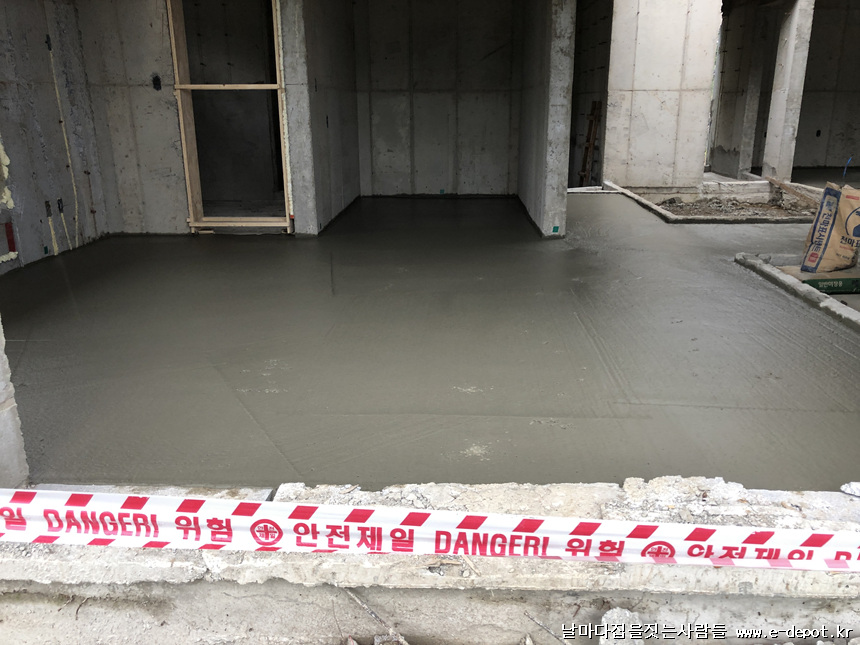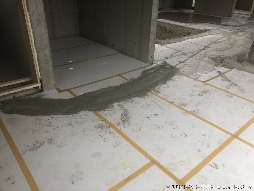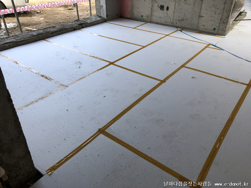 충격방지소음재/바닥단열재시공/단열기포타설 -> 난방코일깔기 -> 바닥몰탈타설