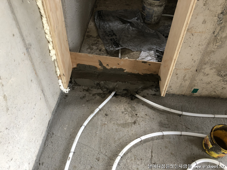 난방코일 까는 작업이 마무리 되면 욕실과 보일러실 문턱에 방수보강을 하여 누수에 대비합니다.