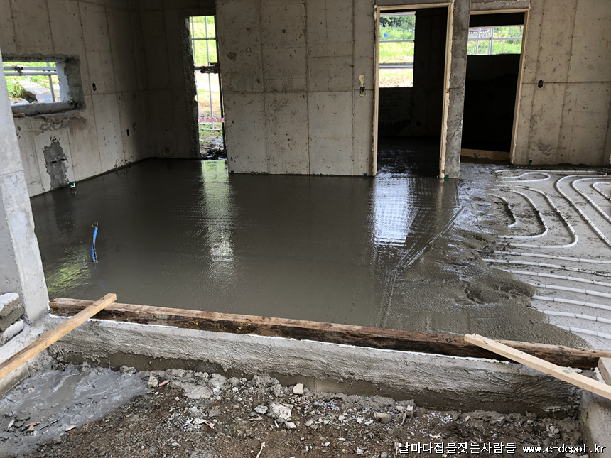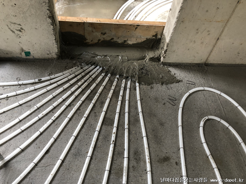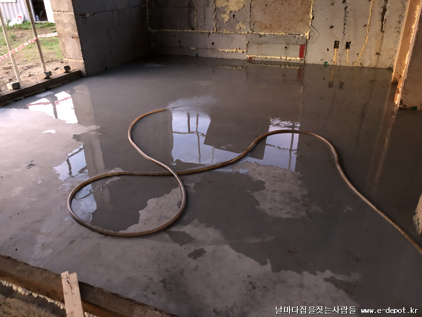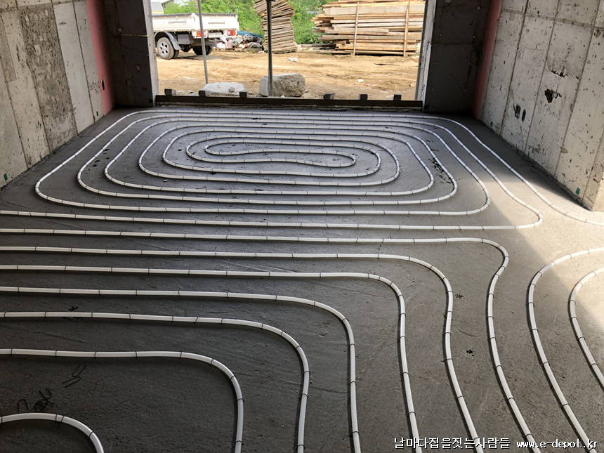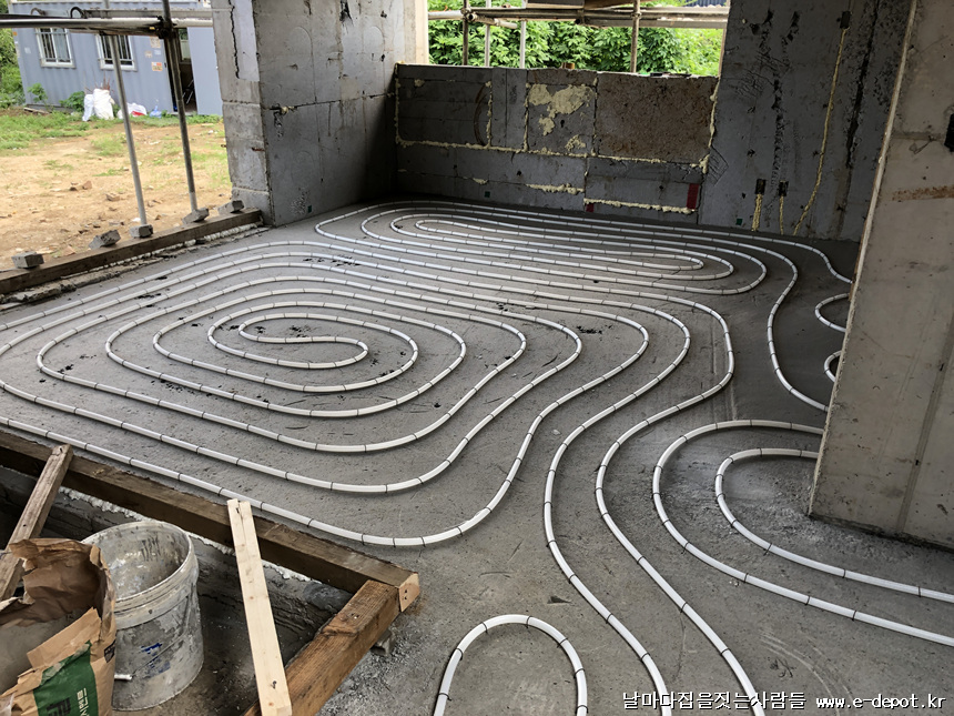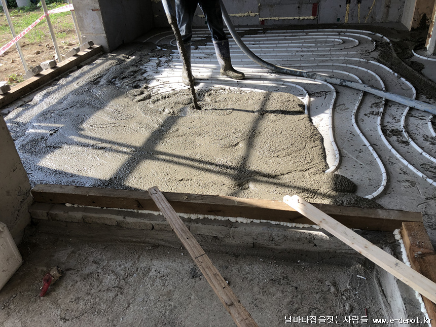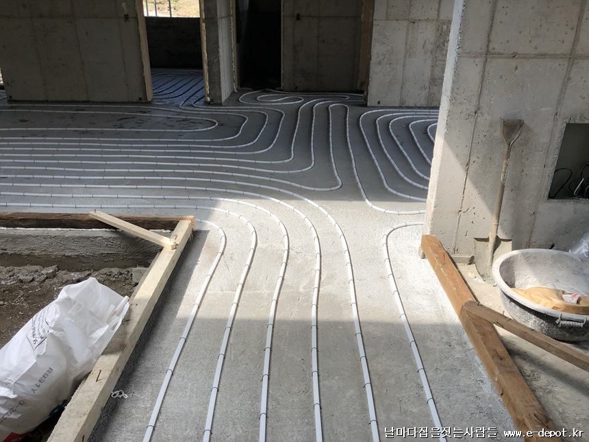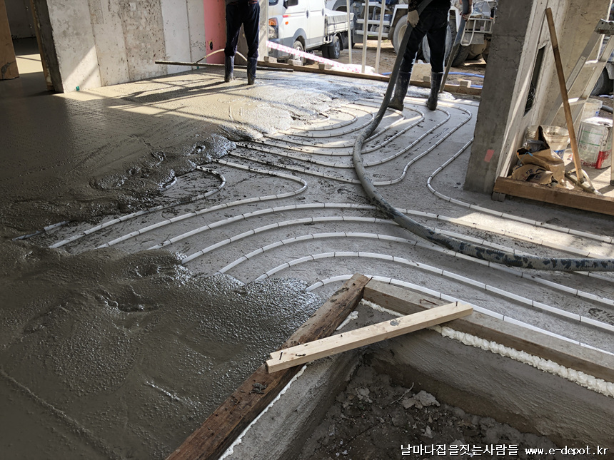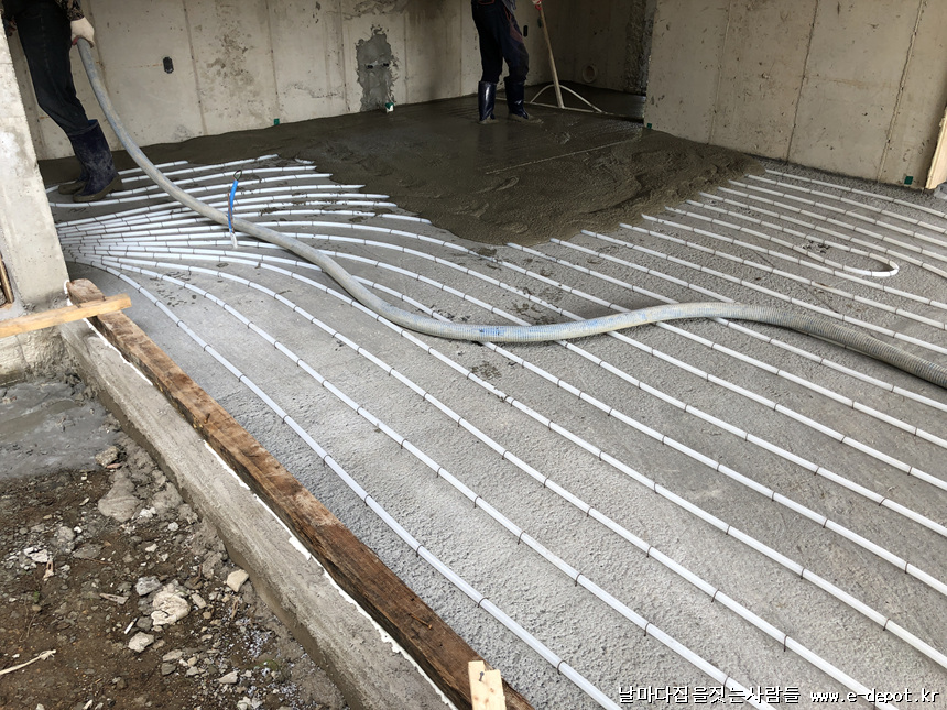 날마다집을짓는사람들의 난방코일깔고 바닥몰탈(방통)타설 과정이었습니다.