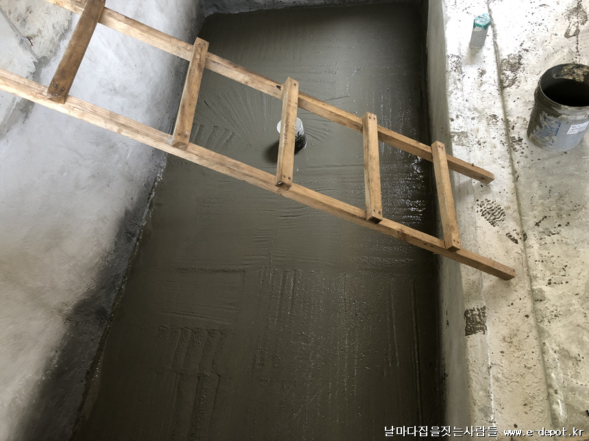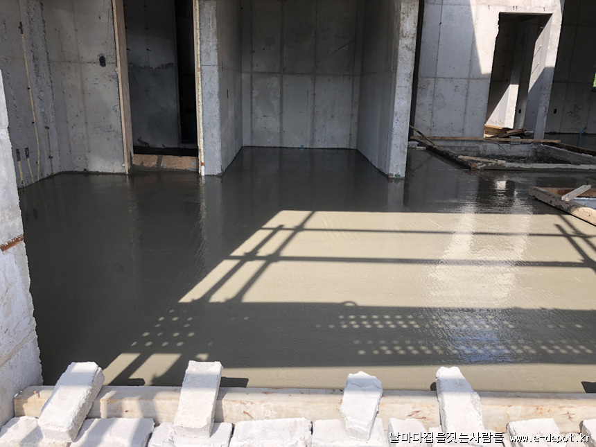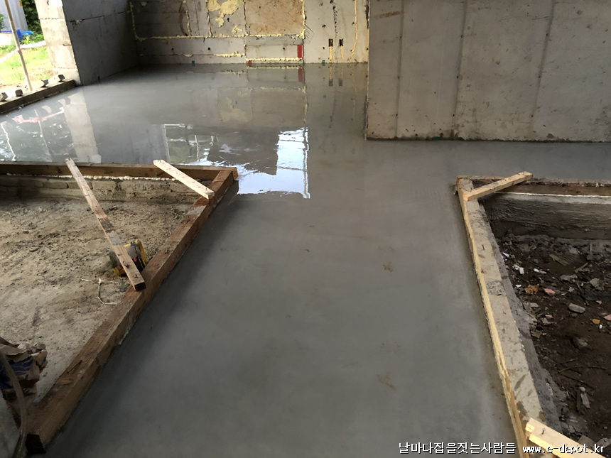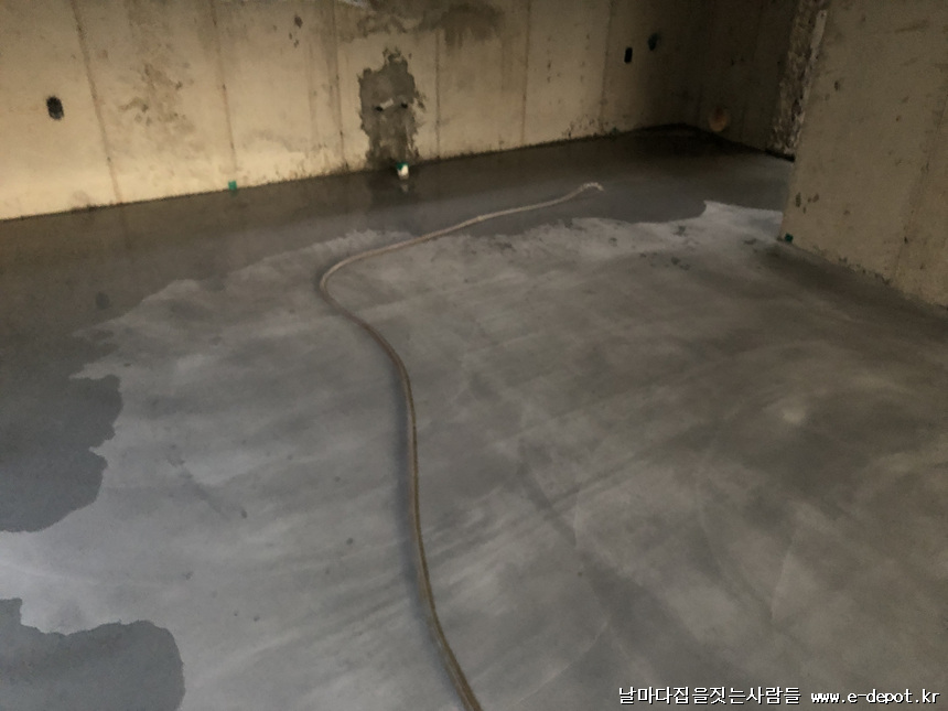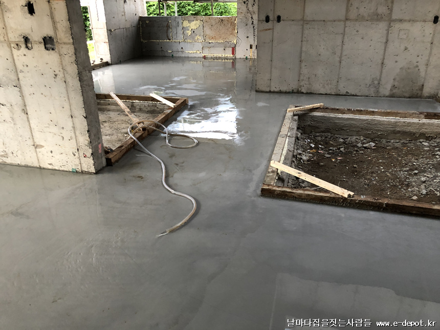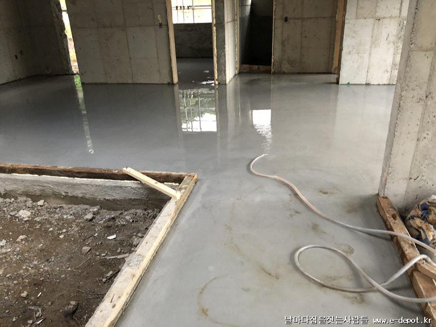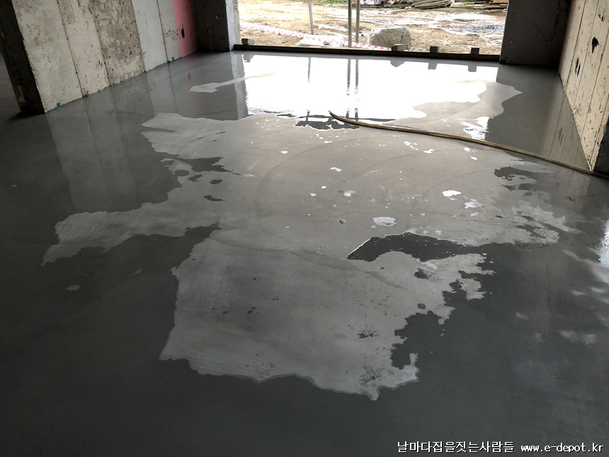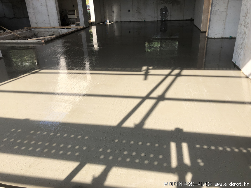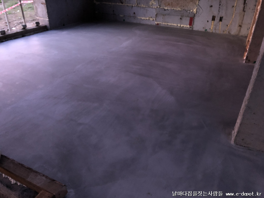 바닥몰탈 타설을 완료한 사진입니다.