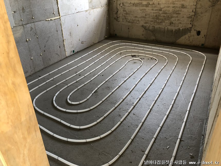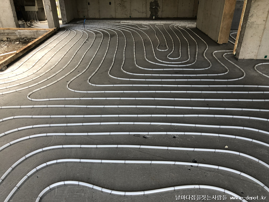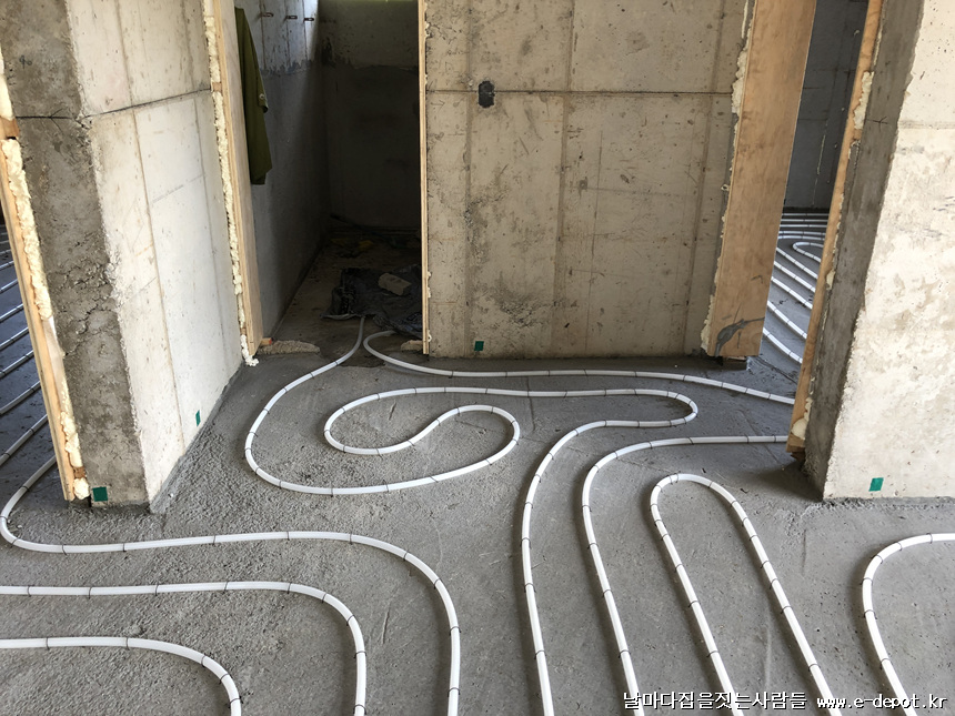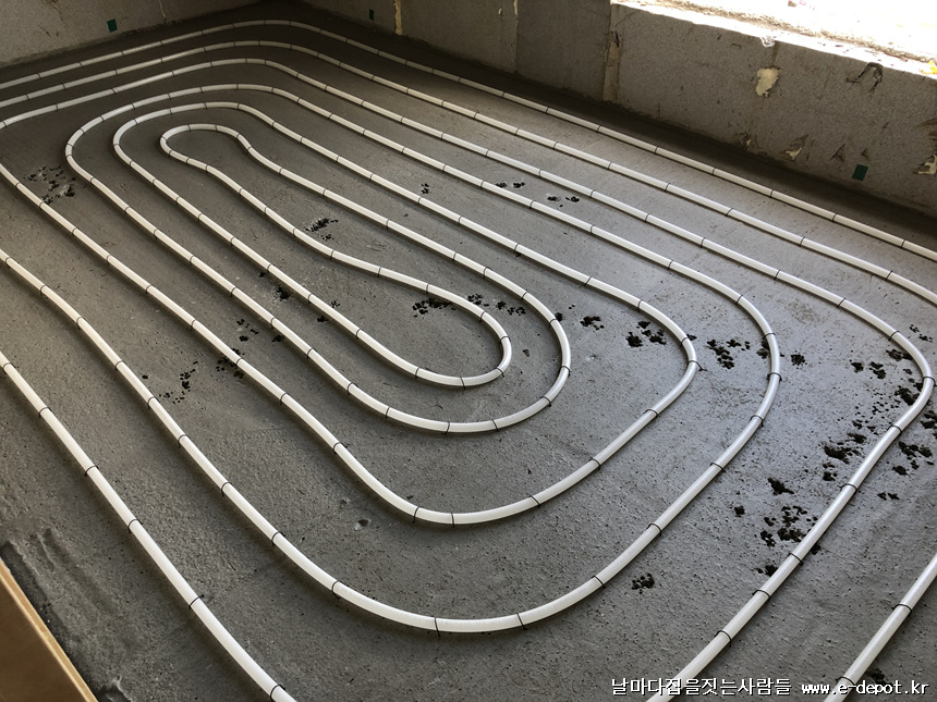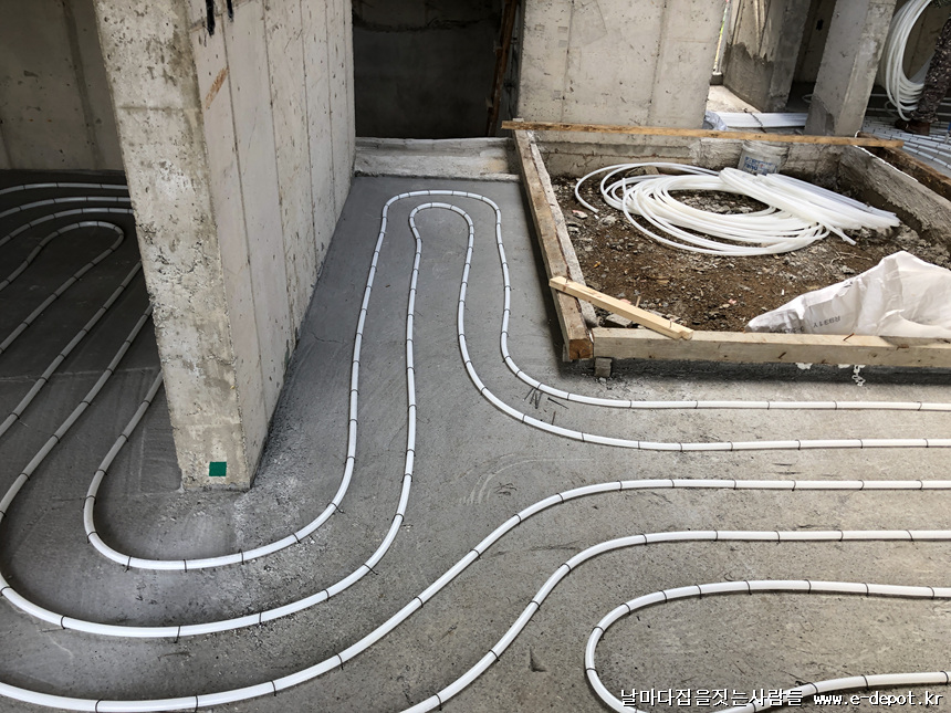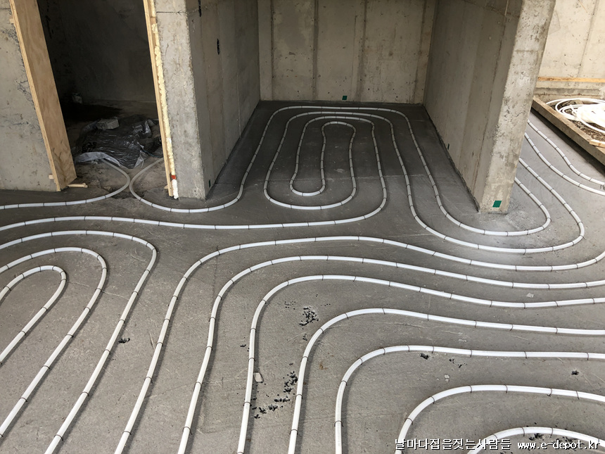 단열재깔고 단열기포타설 -> 난방코일깔기 -> 바닥몰탈타설