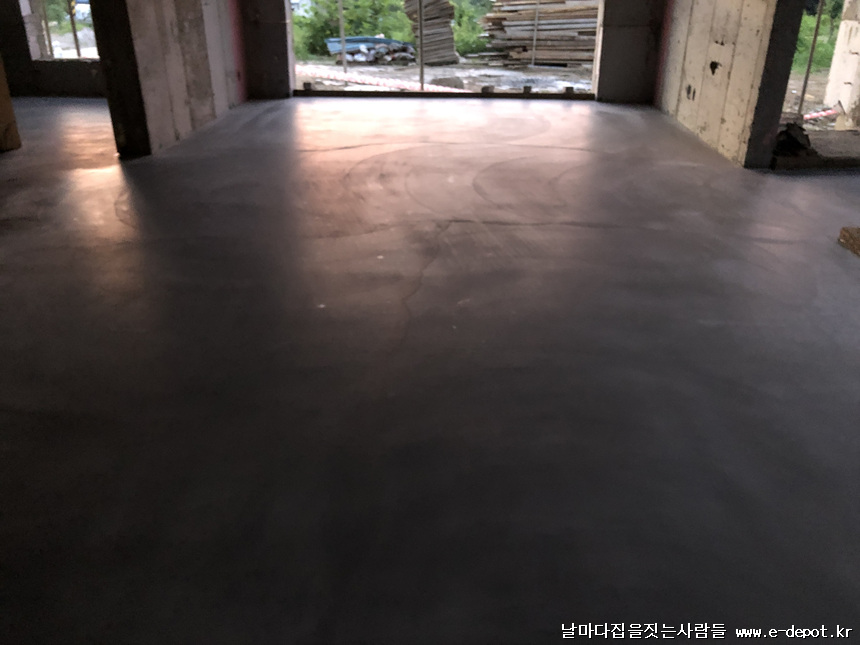 바닥몰탈 쇠흙손 마감사진입니다.