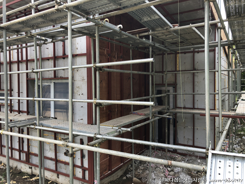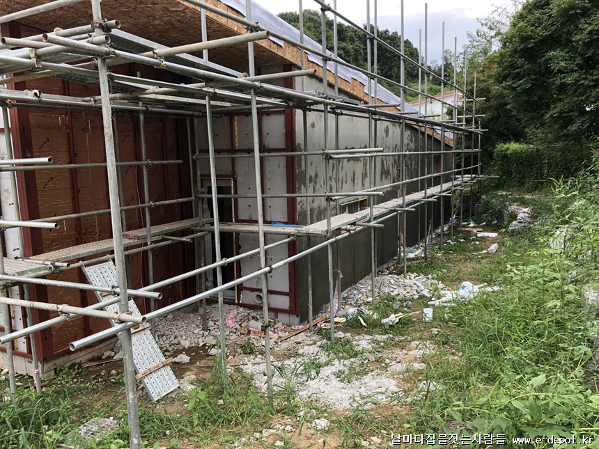 목구조주택과 달리 철근콘크리트주택은 징크나 세라믹사이딩 등 외부마감의 경우 하지작업을 선시공하여야 합니다.