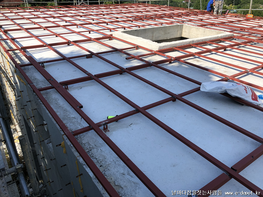 전원주택시공사례. 철근콘크리트주택 징크,세라믹사이딩 하지철물작업 과정입니다.