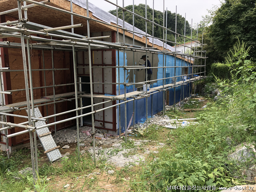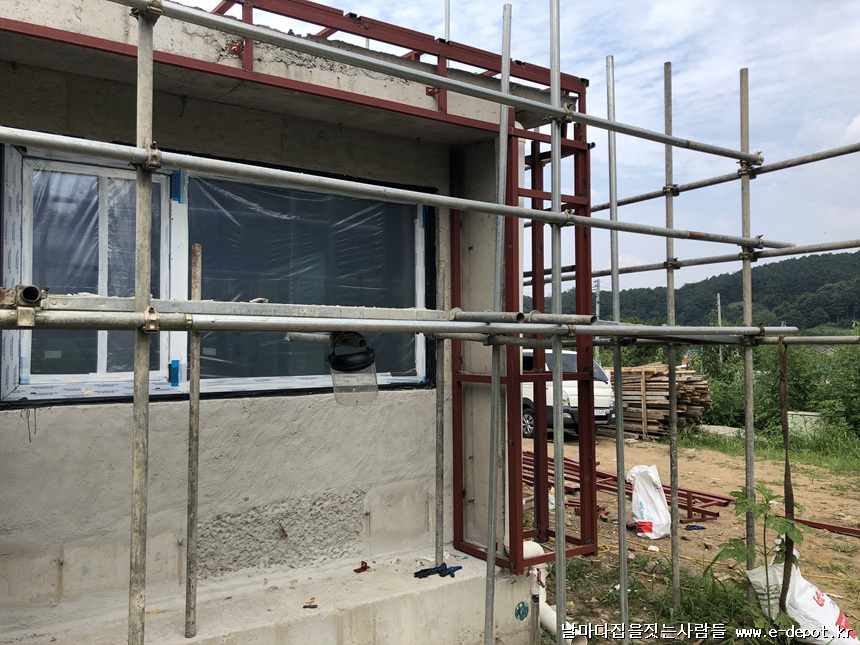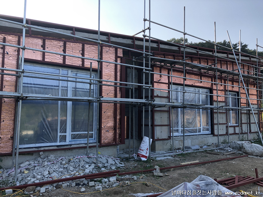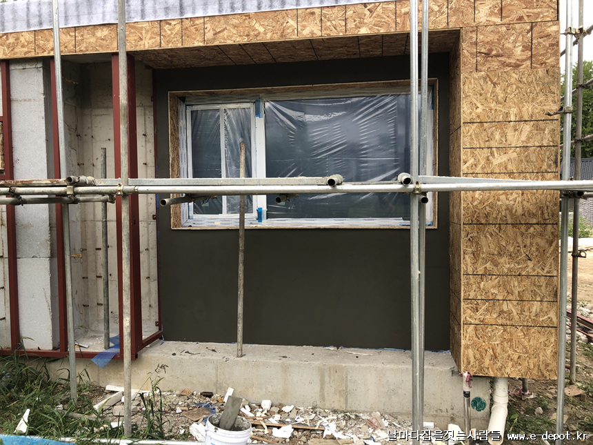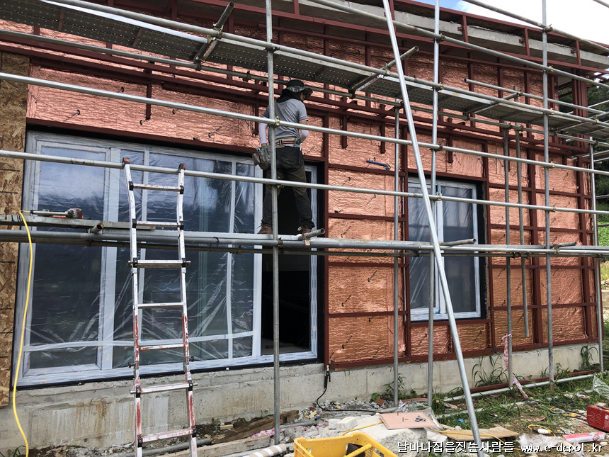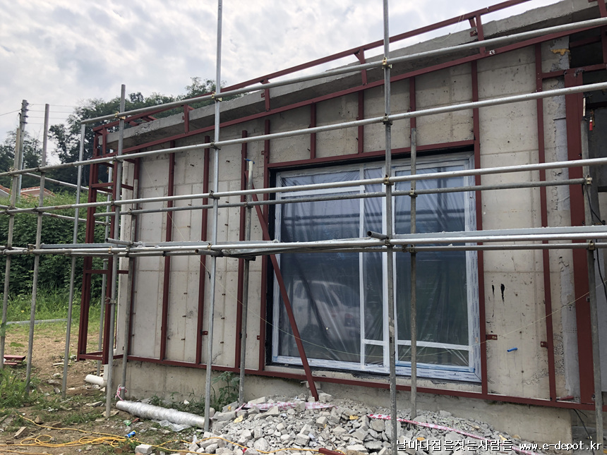 목구조주택과 달리 철근콘크리트주택은 징크나 세라믹사이딩 등 외부마감의 경우 하지작업을 선시공하여야 합니다.