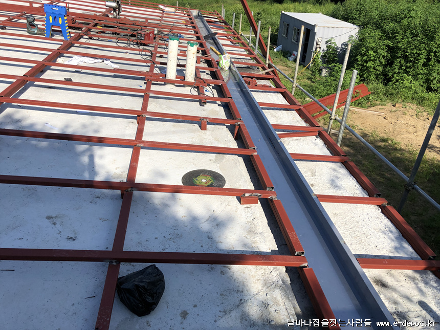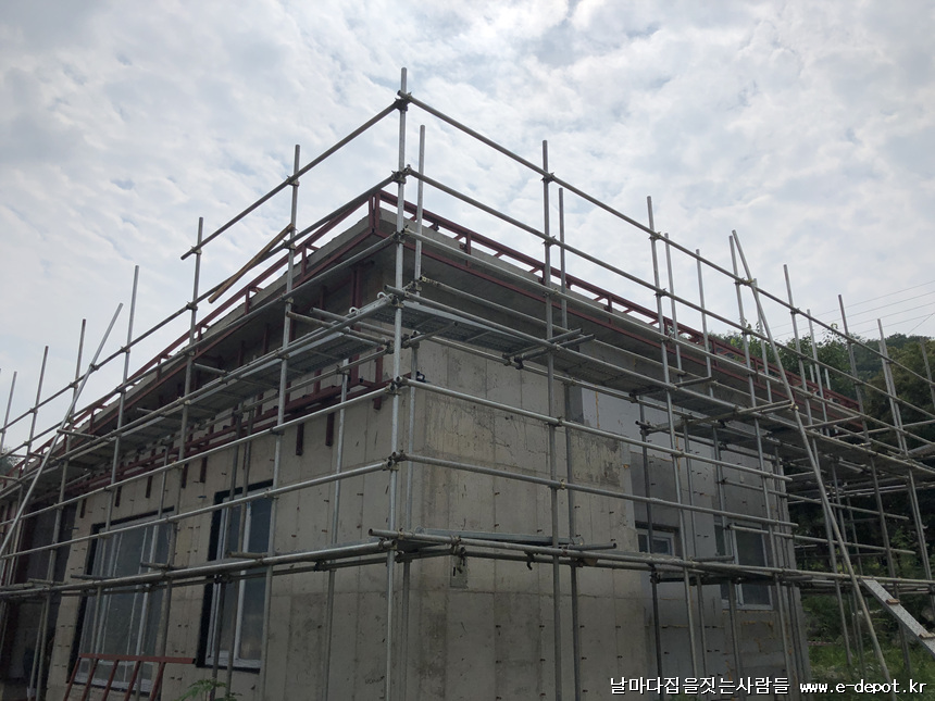 전원주택시공사례. 철근콘크리트주택 징크,세라믹사이딩 하지철물작업 과정입니다.