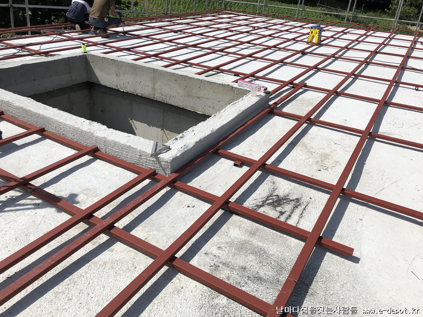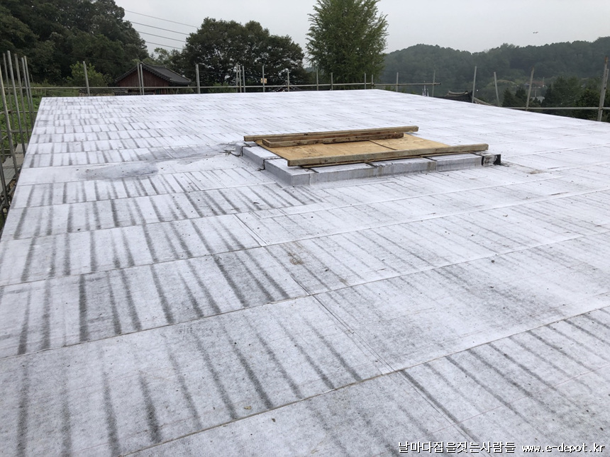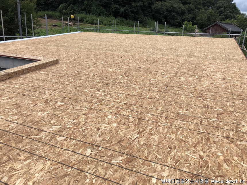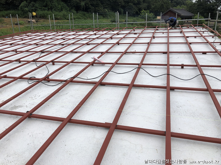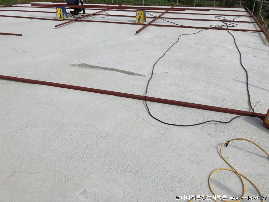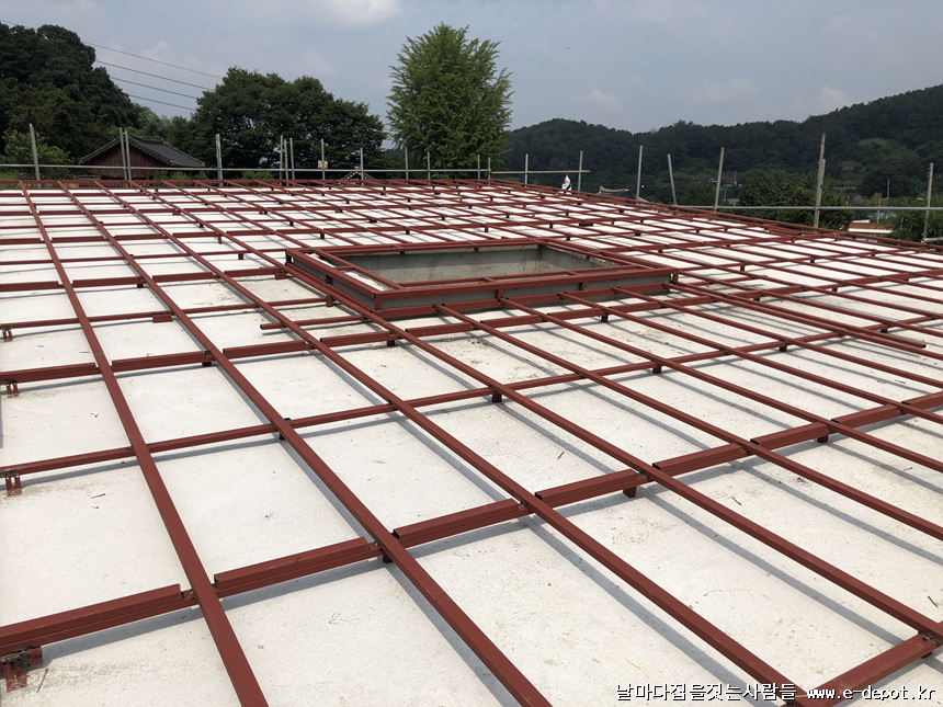 지붕 하지철물위에 합판취부 사진입니다.