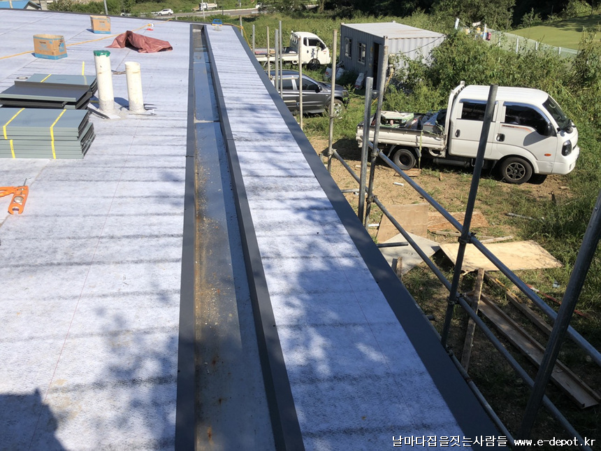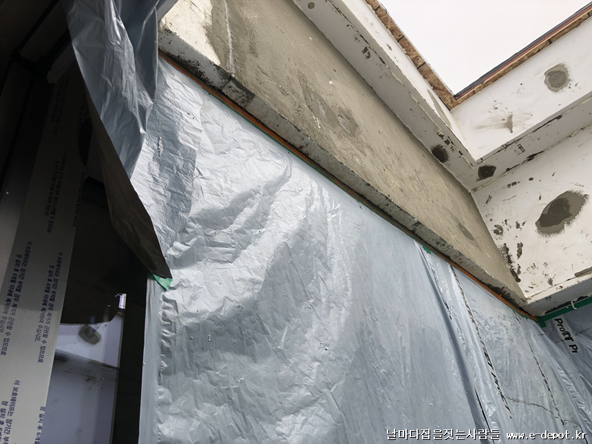 지붕바닥에 방수시트를 깔아줄때 방수시트가 옆면까지 충분히 감아 내려오도록 해주는것이 좋습니다.