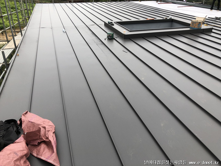 지붕 바닥에 징크판을 마감한 사진입니다.