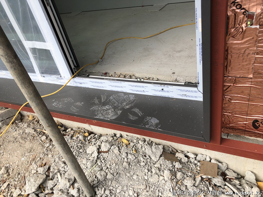 내부 인테리어 작업자들이 출입문을 두고 창문을 이용하여 출입을 하고 자재를 반입,반출한 흔적.. 에궁 애써서 작업한 징크에 손상이 가면 어쩔라구요...;;