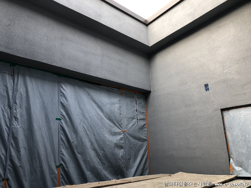 스타코플렉스 2차 도포사진입니다. 1차 도포작업에서 미비한 부분을 보강하면서 깔끔하게 최종 마무리 합니다.