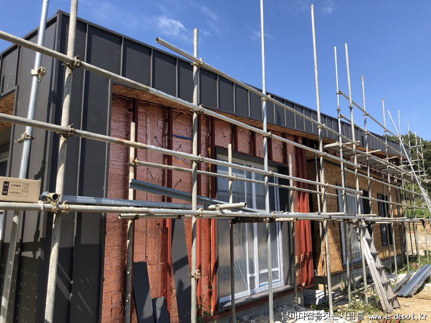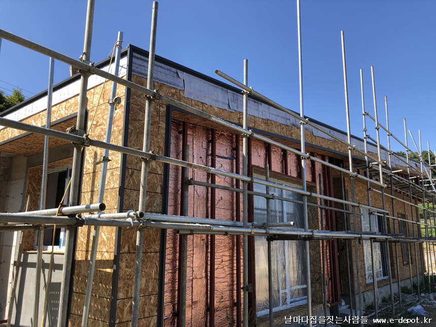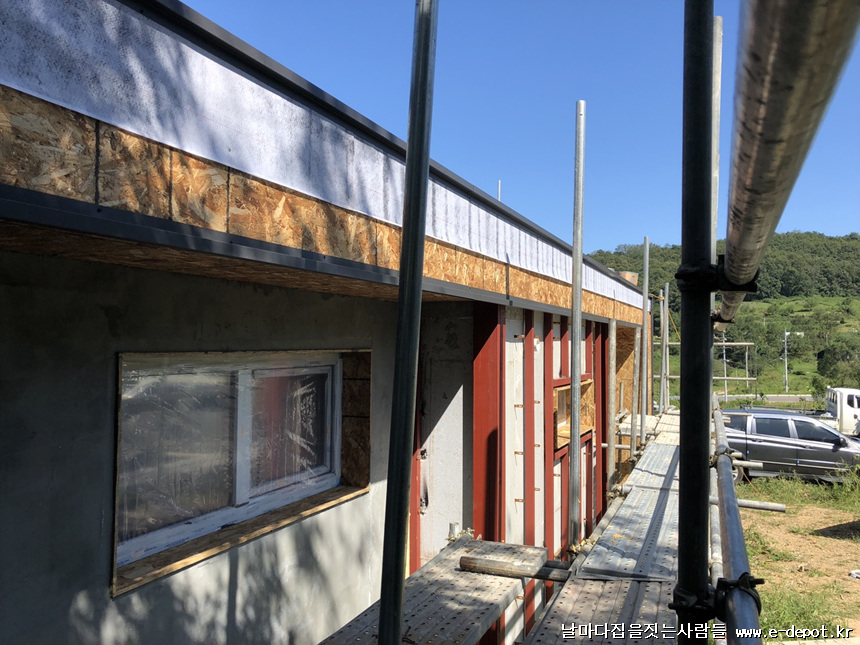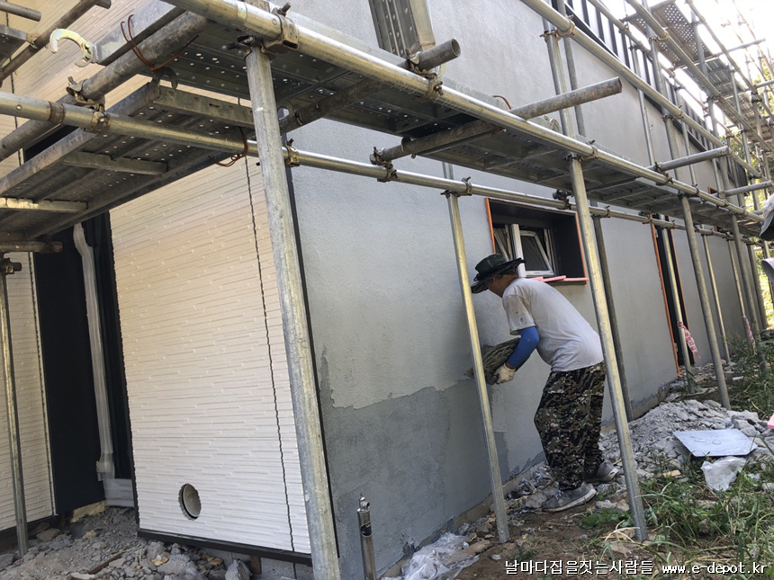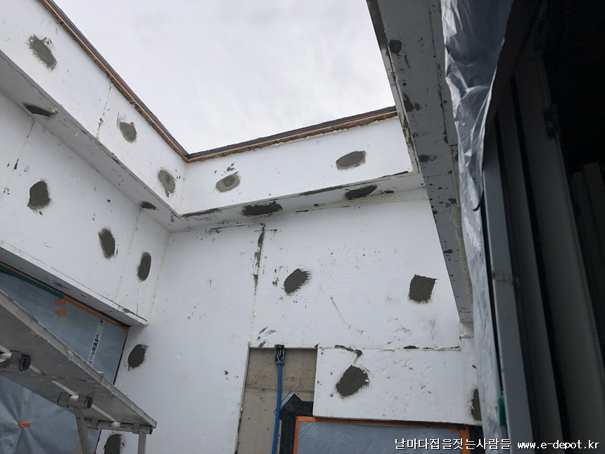 스타코플렉스 시공을 위한 단열재취부사진입니다.