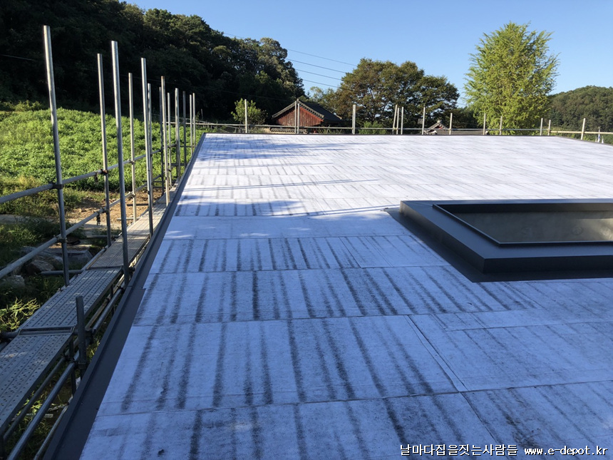 지붕바닥에 방수시트를 깔아줄때 방수시트가 옆면까지 충분히 감아 내려오도록 해주는것이 좋습니다.
