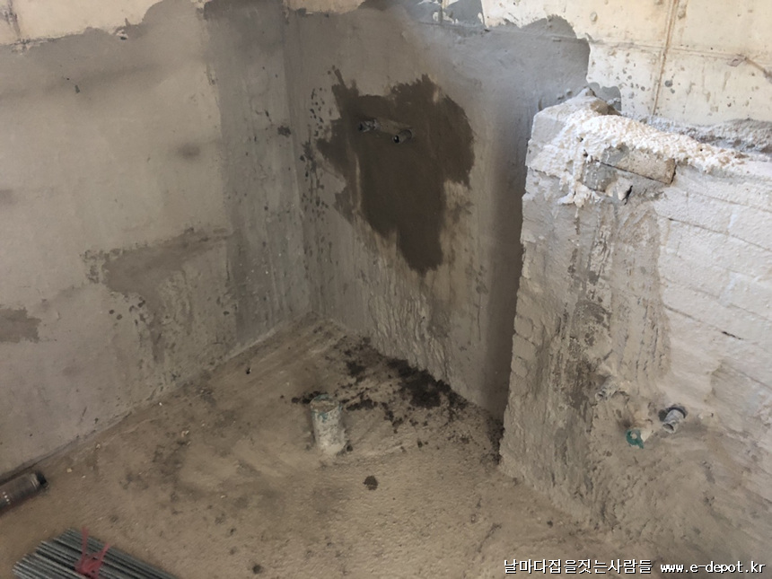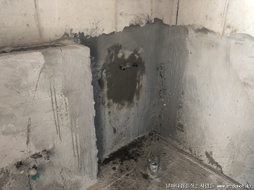 급수배관 연장 후 방수 보강한 사진입니다.
