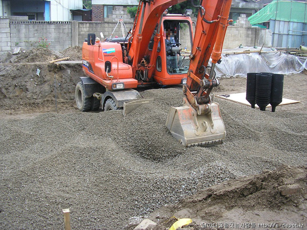 팽이말뚝기초를 하기 전에 기초부위에 잡석을 깔아줍니다.