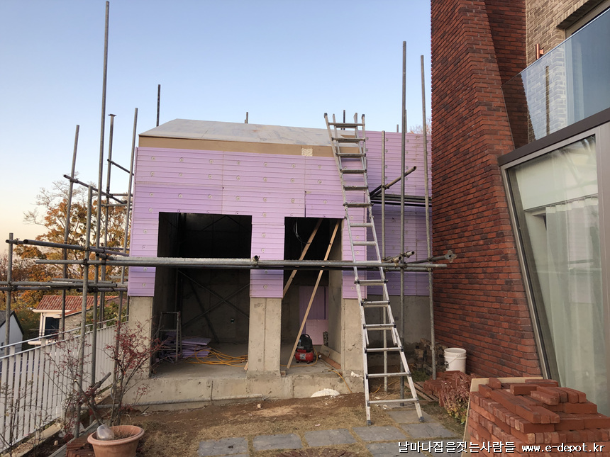 날마다집을짓는사람들의 전원주택 부속건물 외부단열공사과정이었습니다.