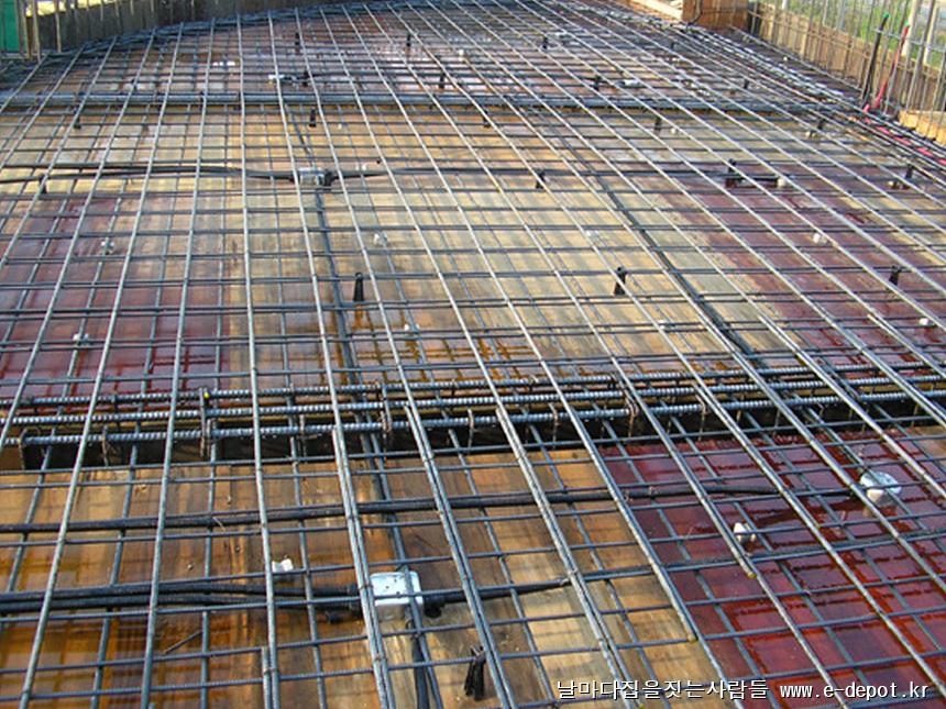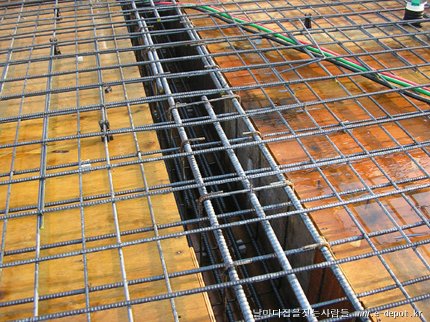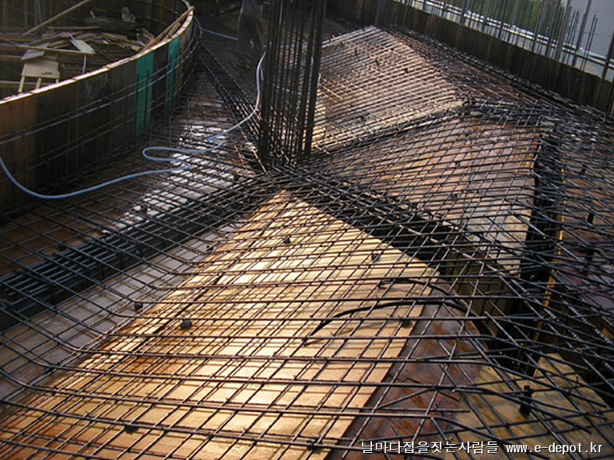 철근 배근이 끝나면 거푸집에 있는 이물질을 없애기 위해 물을 사용하여 깨끗이 청소 하도록 합니다.