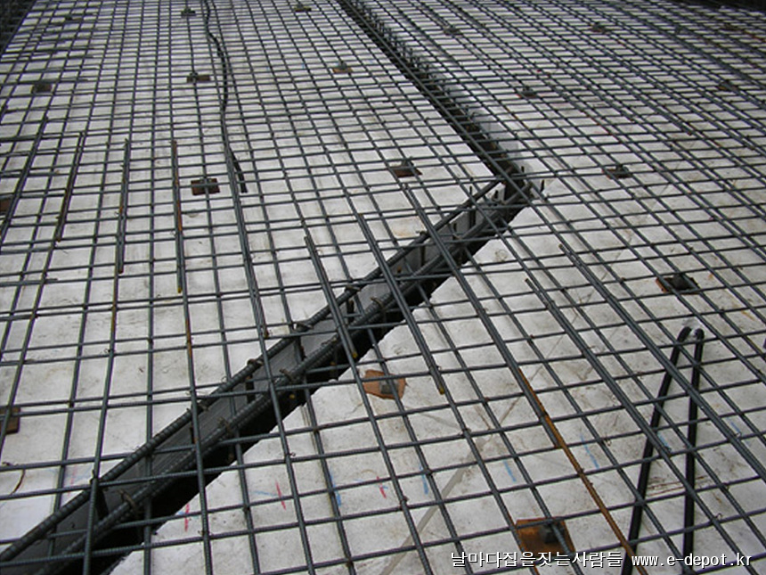 스라브 거푸집 조성 후 철근 배근 사진입니다.