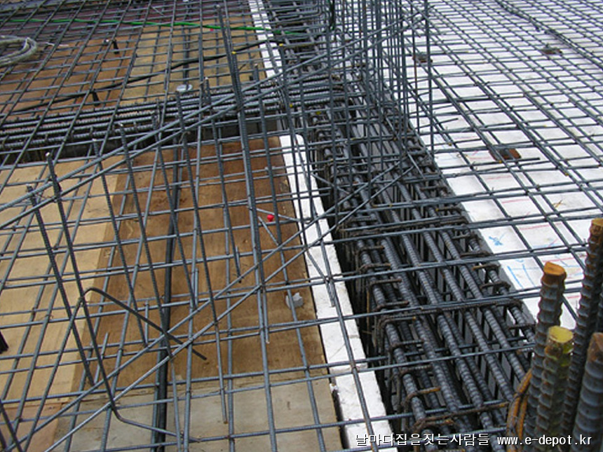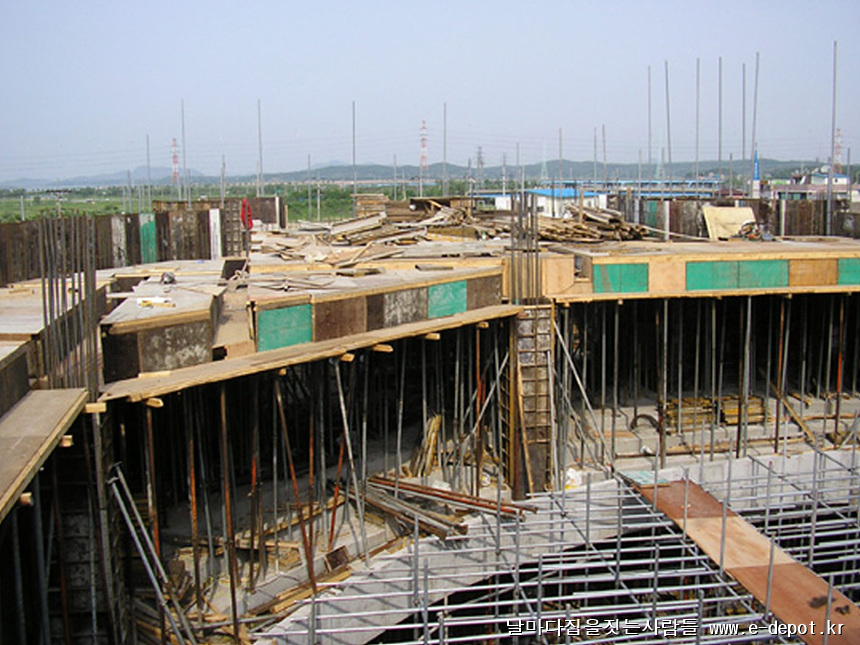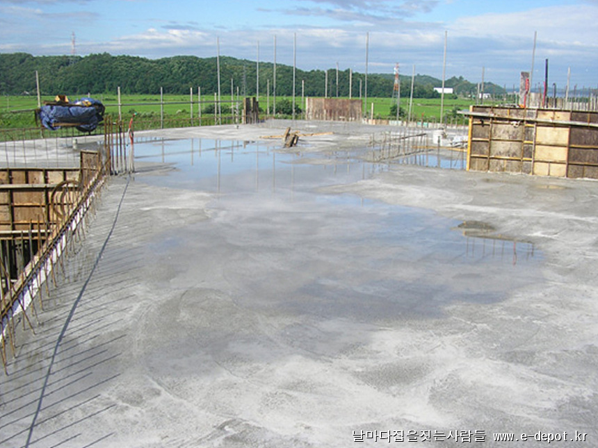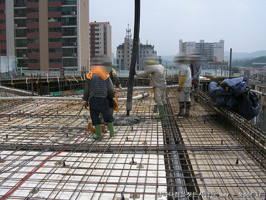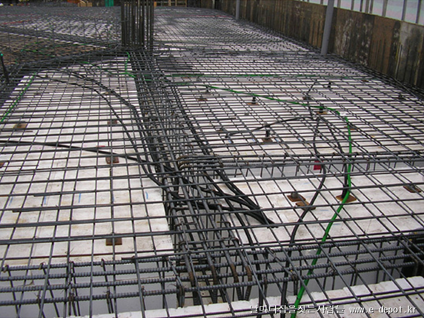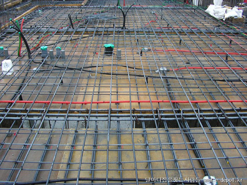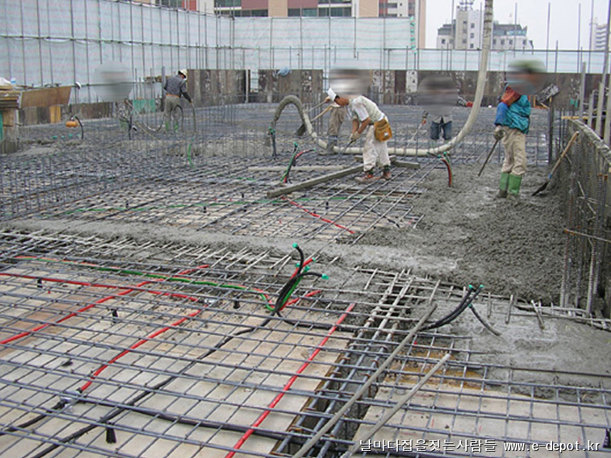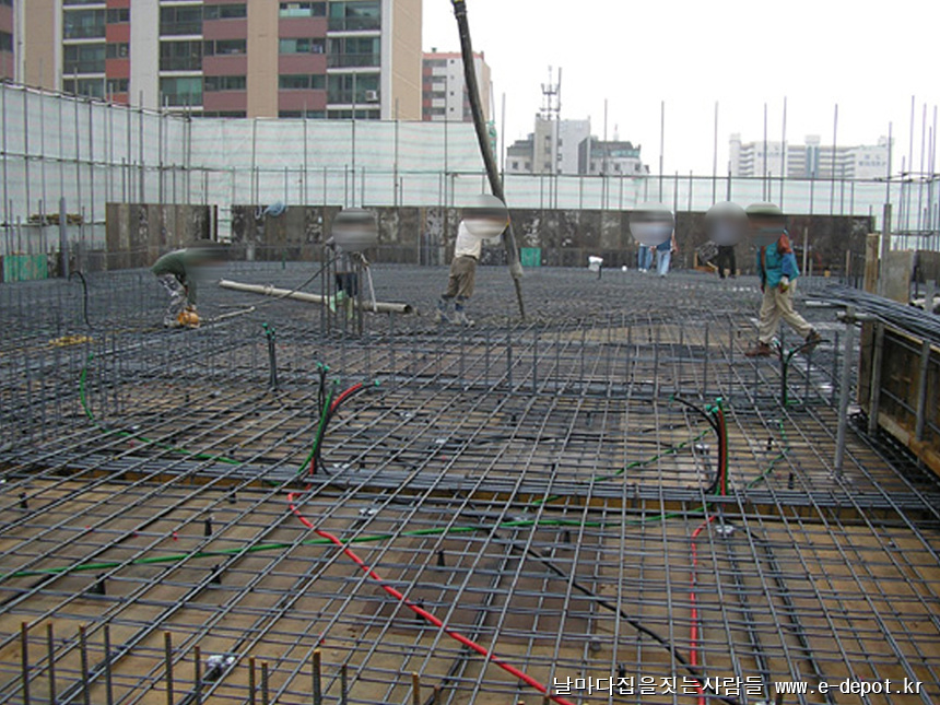 철근배근과 전기배관 작업이 마무리 된 후 콘크리트 타설 사진입니다.