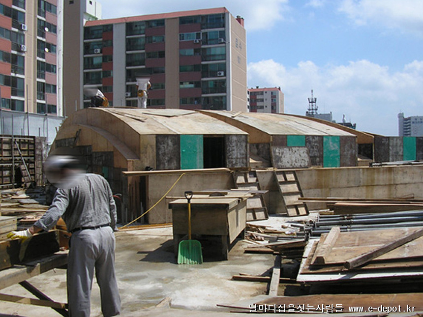 날마다집을짓는사람들의 철근콘크리트 골조공사. 거푸집조성, 철근배근, 콘크리트 타설 과정이었습니다.