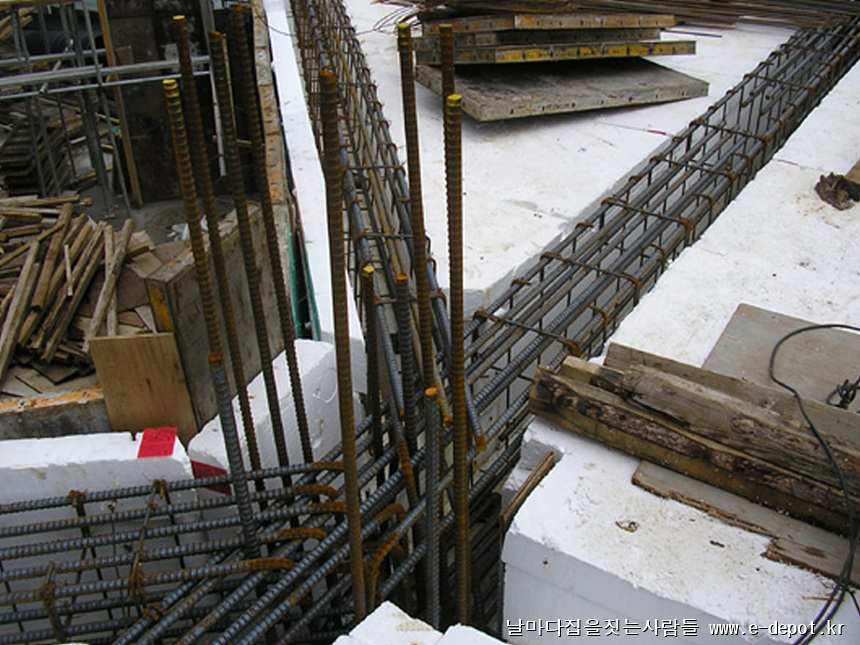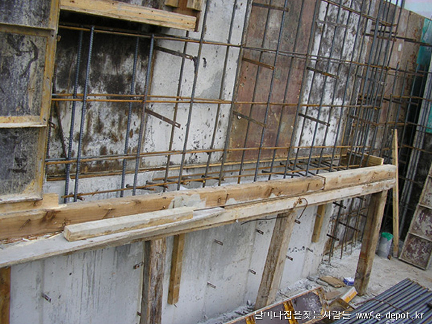 형틀거푸집을 조립하고 철근배근을 하여 콘크리트 타설을 하는 과정입니다.