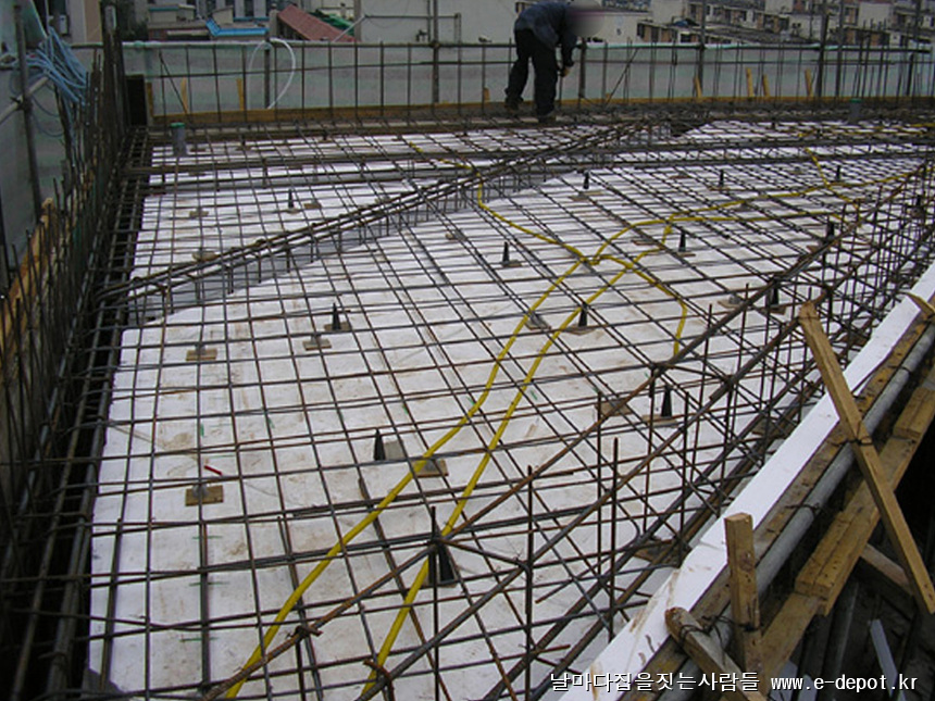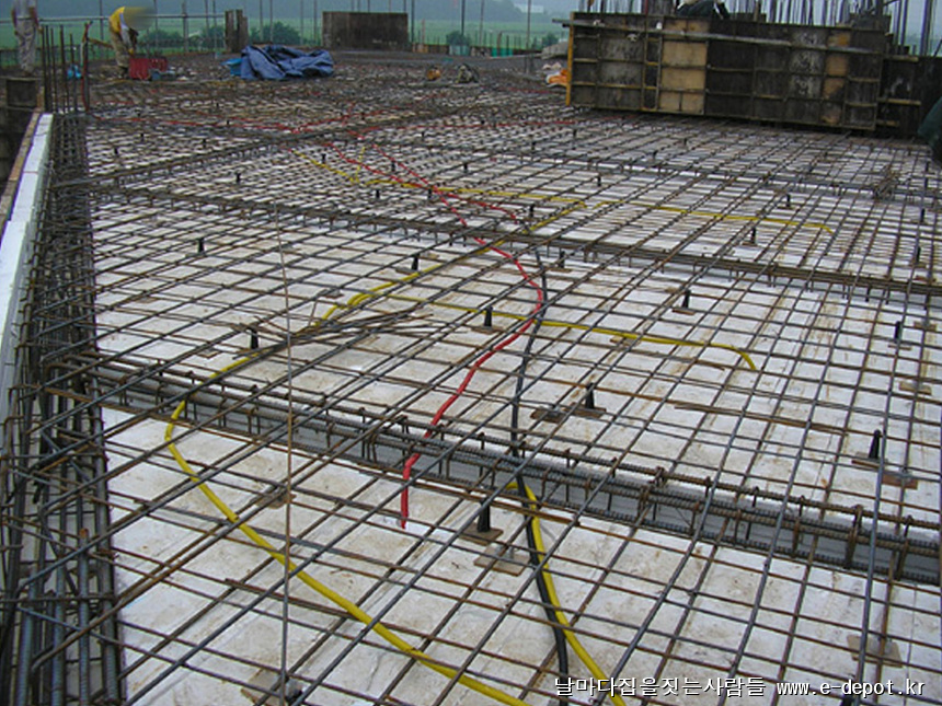 바닥 철근배근작업시 전기배관작업을 병행합니다.