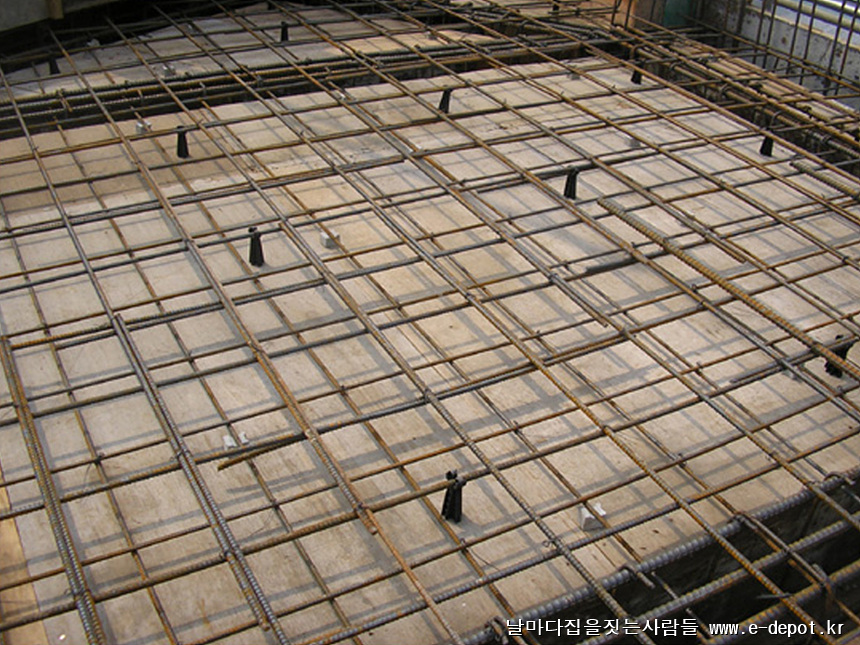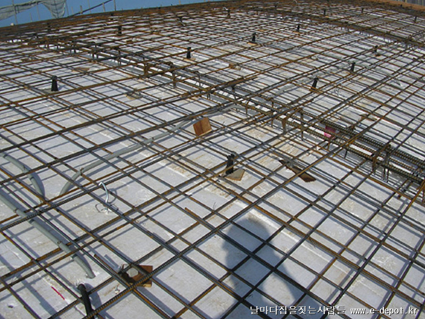 보 철근을 마치면 스라브 바닥 철근을 배근합니다.