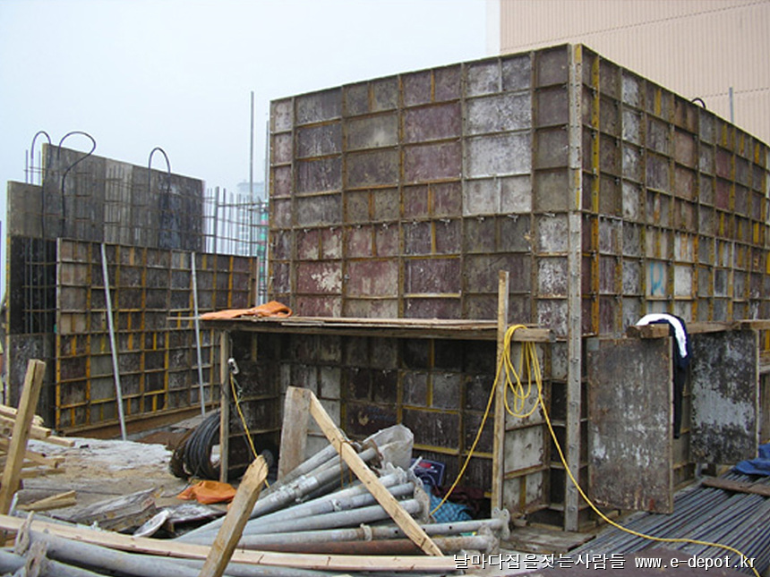 형틀거푸집은 콘크리트 타설시 콘크리트 압력을 충분히 버텨야 함으로 견고하고 튼튼하게 시공되어야 합니다.