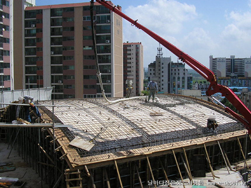 최상층(지붕) 콘크리트 타설 사진입니다.