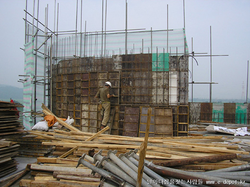 형틀거푸집은 콘크리트 타설시 콘크리트 압력을 충분히 버텨야 함으로 견고하고 튼튼하게 시공되어야 합니다.